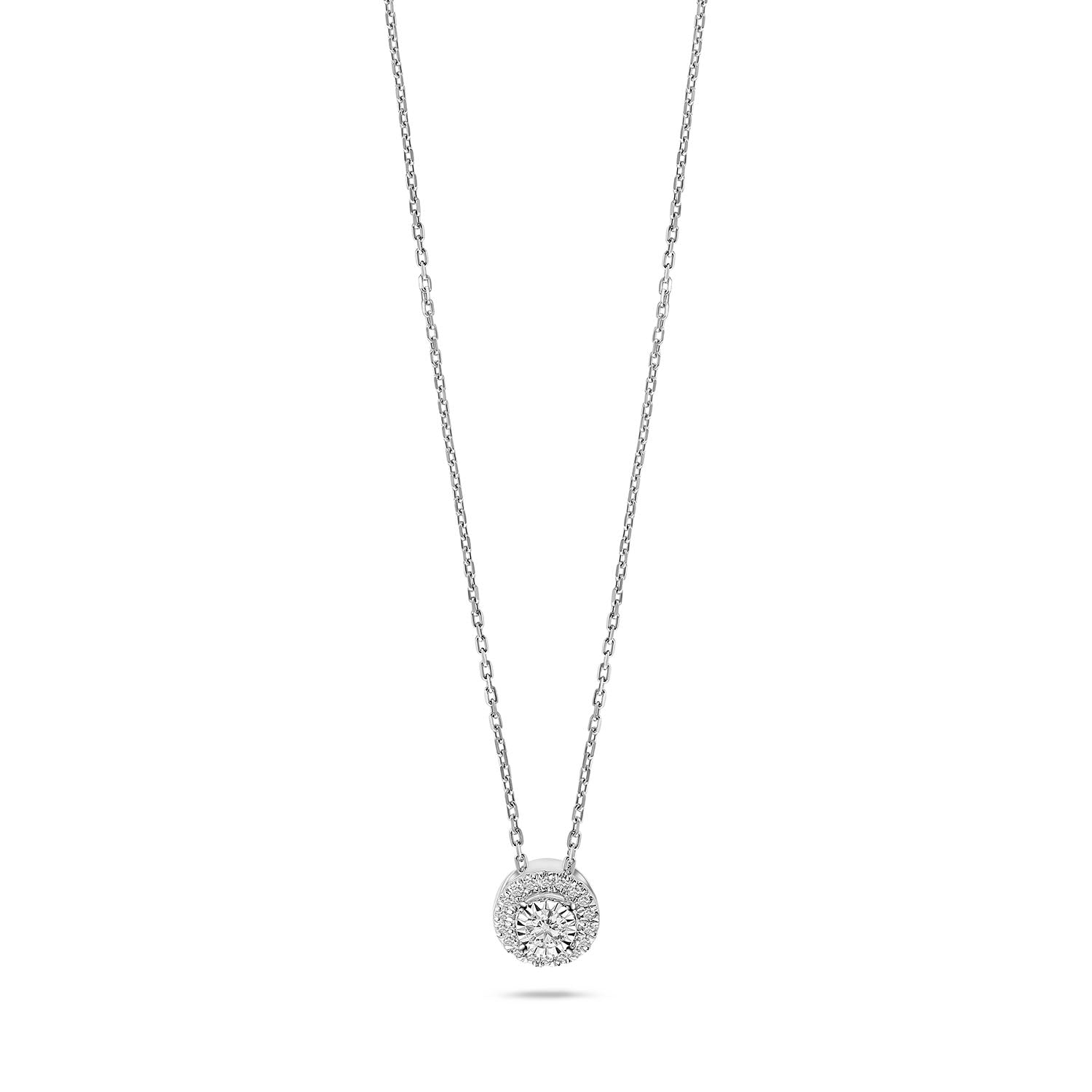 Colier din aur alb cu diamante cultivate in laborator din colectia Millennium. Fabricat din aur alb de 14 karate, colierul este sertat cu 19 diamante frumoase, cultivate in laborator, taiate in stralucire. Colierul are 45 cm lungime. Asociati-l cu bijuterii asortate din colectie pentru a completa aspectul.