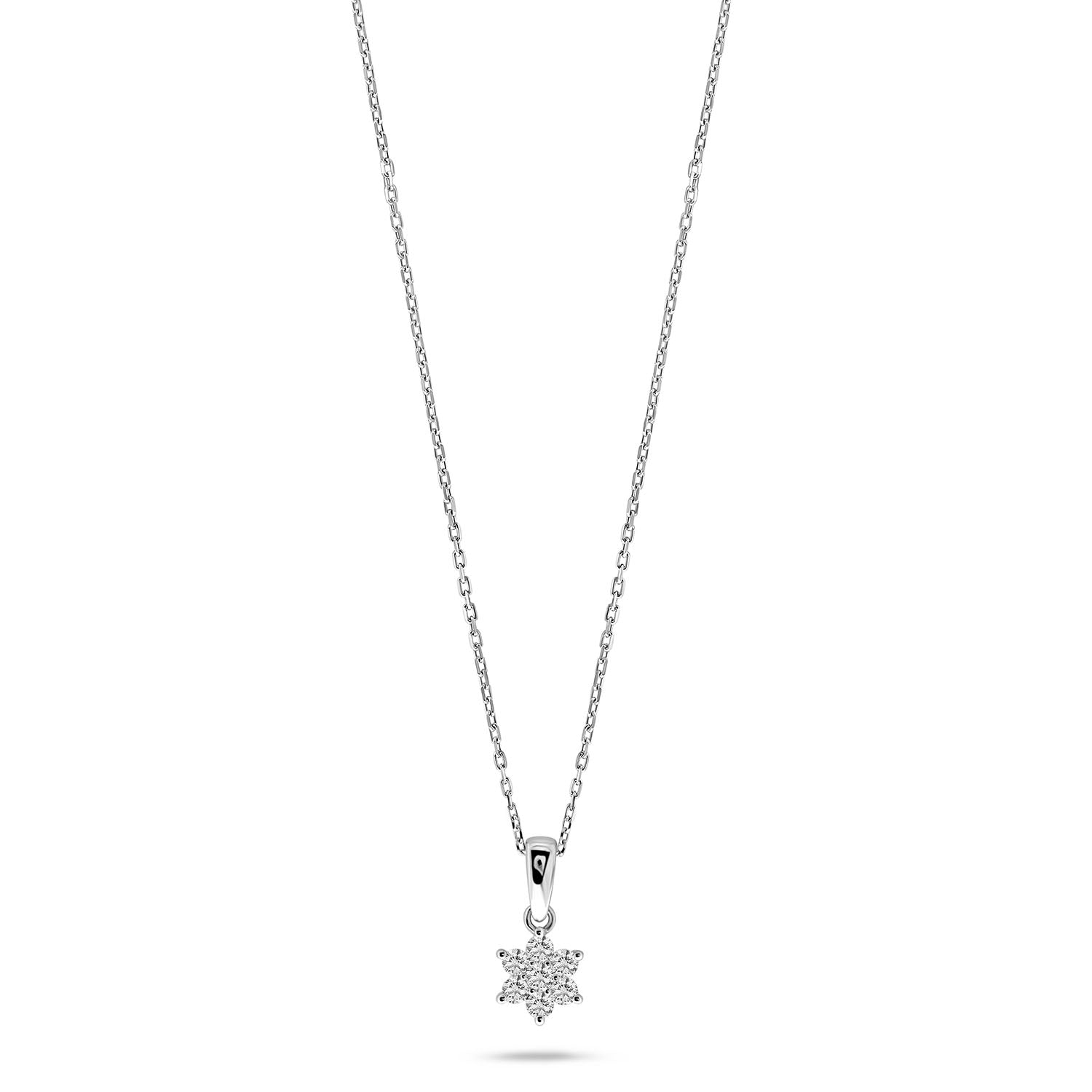 Colier stea din aur alb cu diamante cultivate in laborator din colectia Millennium. Fabricat din aur alb de 14 karate, colierul este sertat cu sapte diamante uimitoare, taiate stralucitor, cultivate in laborator. Lungimea colierului este de 45 cm.