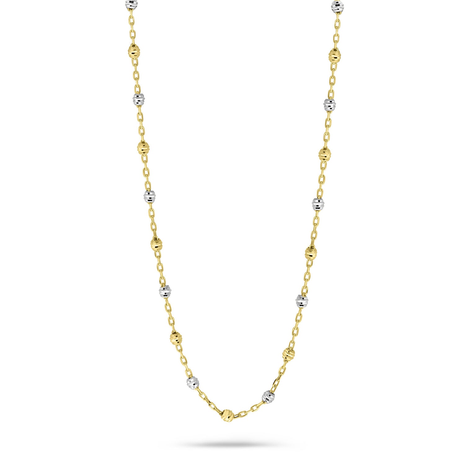 Acest colier delicat de la Gold by Siebel combina aurul de 14 karate cu margele din aur galben si alb, plasate in mod jucaus. Tonurile calde si reci, alternate, creeaza un joc elegant de culori care stralucesc subtil la fiecare miscare. Legaturile fine fac colierul usor si confortabil de purtat, in timp ce designul plasat ritmic ii confera un aspect contemporan. Cautati un colier versatil care poate fi purtat singur sau in straturi cu alte coliere? Atunci aceasta piesa este alegerea perfecta. O piesa atemporala care se potriveste fara efort de la zi la seara - eleganta, feminina si plina de caracter.
