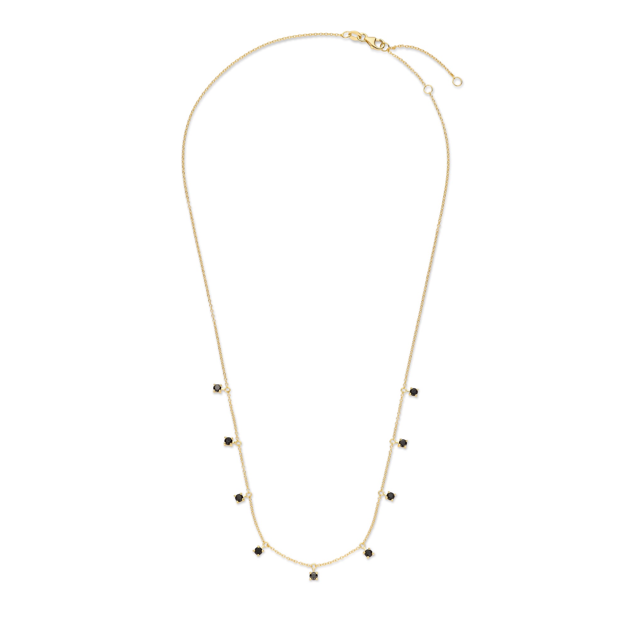 Pietrele negre de zirconiu creeaza un aspect gratios si atemporal, facand colierul usor de combinat cu alte bijuterii. Colierul are 45 cm lungime.