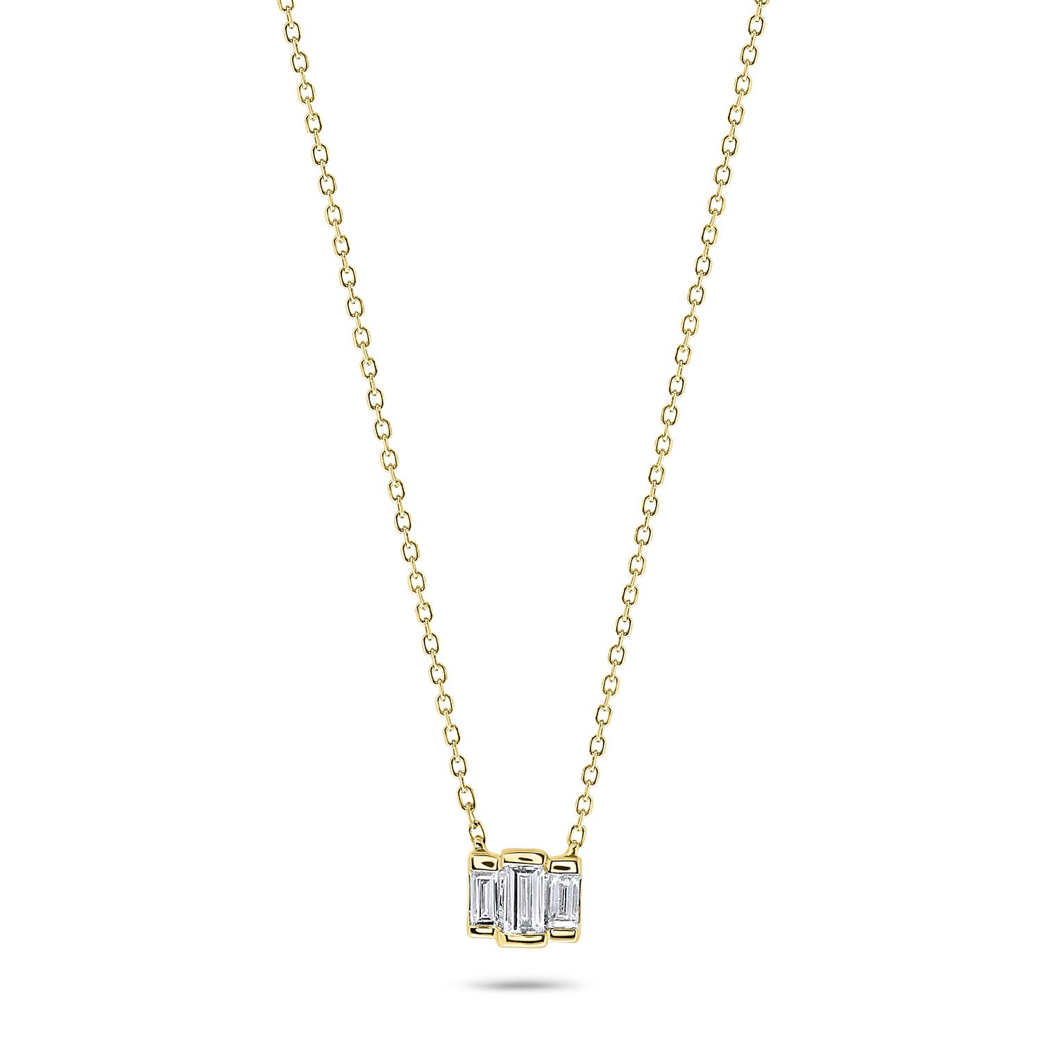 Colier lingot din aur galben cu diamante din colectia ICE. Fabricat din aur galben de 14 karate, colierul are un pandantiv cu diamante uimitoare taiate bagheta, care ii confera un aspect luxos. Combina colierul cu alte piese din colectie pentru a-ti completa look-ul.