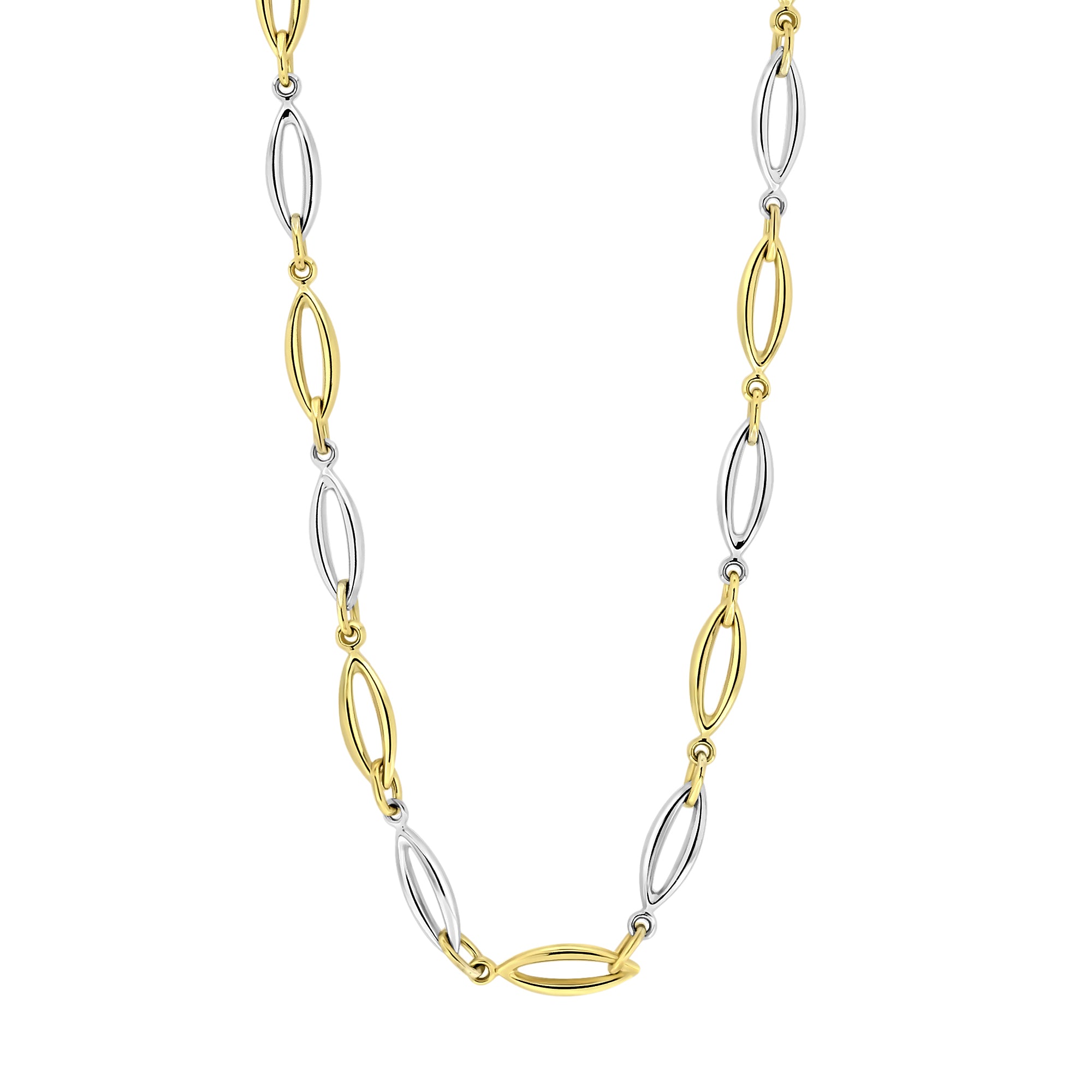 Colier bicolor din colectia Twinline. Un colier fantezie cu aur galben si alb.