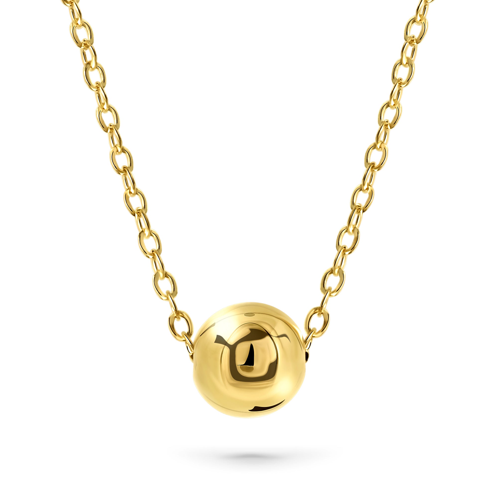 Colier din aur galben din colectia Minimalist. Un pandantiv sferic de 4 mm este atasat la centrul colierului.