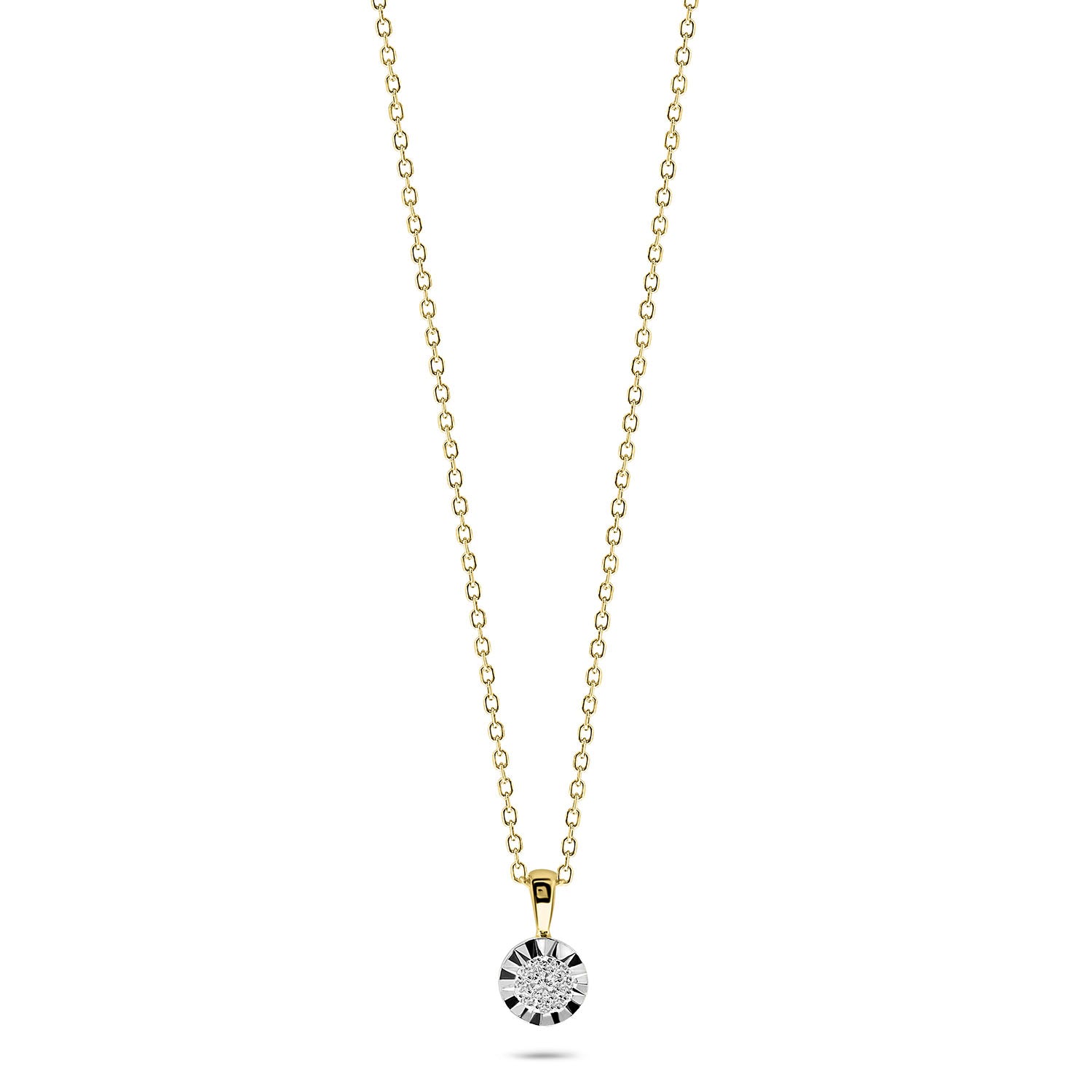 Colier din aur galben cu un diamant din colectia Miracle. Fabricat din aur alb de 14 karate, colierul are un pandantiv cu noua diamante stralucitoare. Lantul are 45 cm lungime. Asociati colierul cu alte piese asortate din colectie pentru a va completa look-ul.