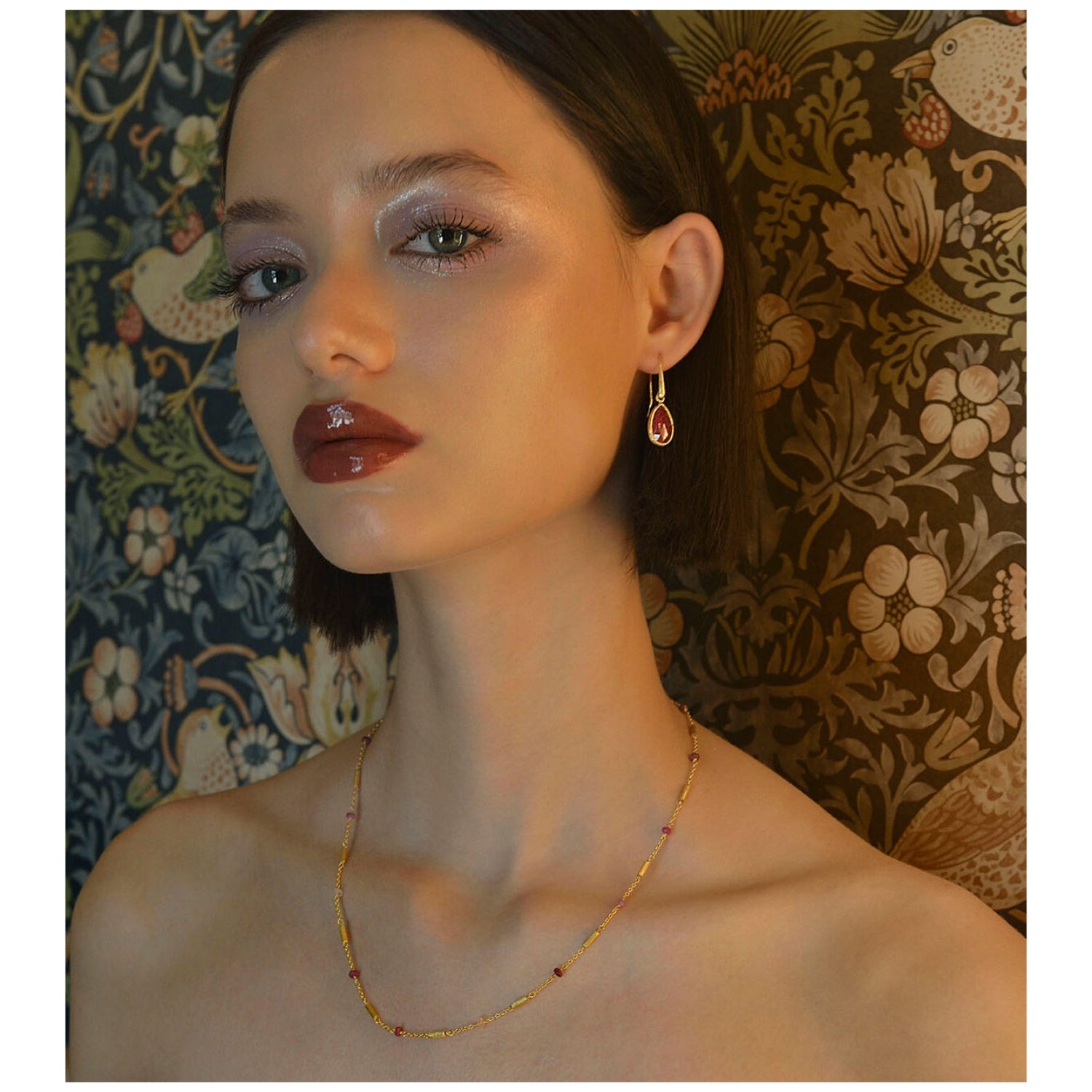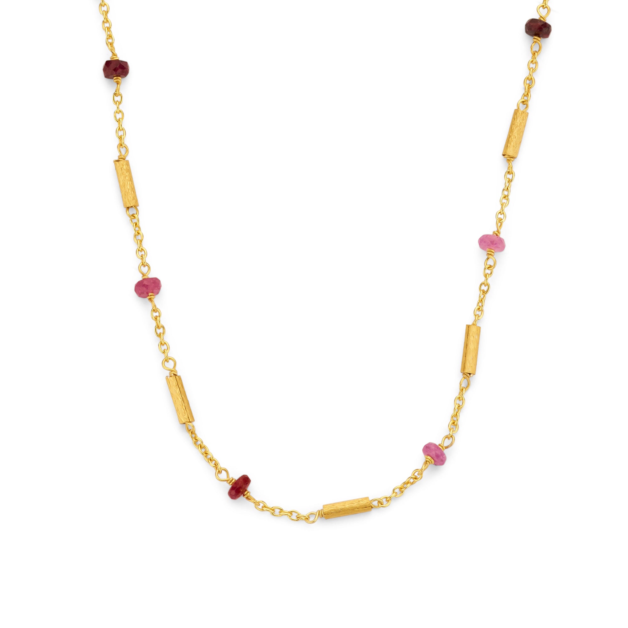 Acest colier elegant Salvatore Plata este realizat din argint 925 si placat cu aur pentru un aspect luxos. Lantul de 48 cm, cu prelungire, are o veriga de ancora atemporala si este impodobit cu rubine rosii stralucitoare. Rubinele, renumite pentru culoarea lor rosu intens si stralucirea stralucitoare, simbolizeaza pasiunea si puterea. Adauga o nota de rafinament colectiei tale de bijuterii cu acest colier feeric.