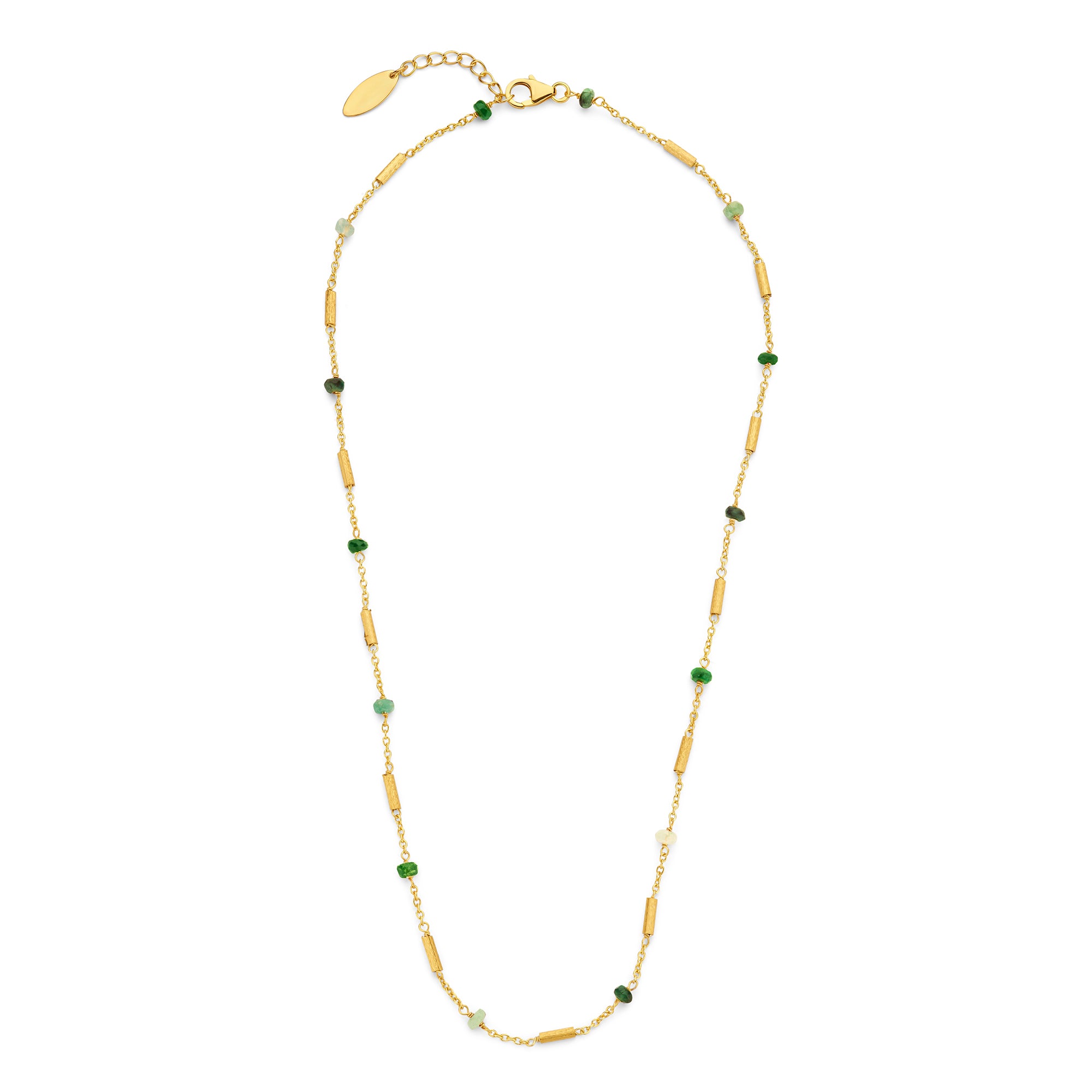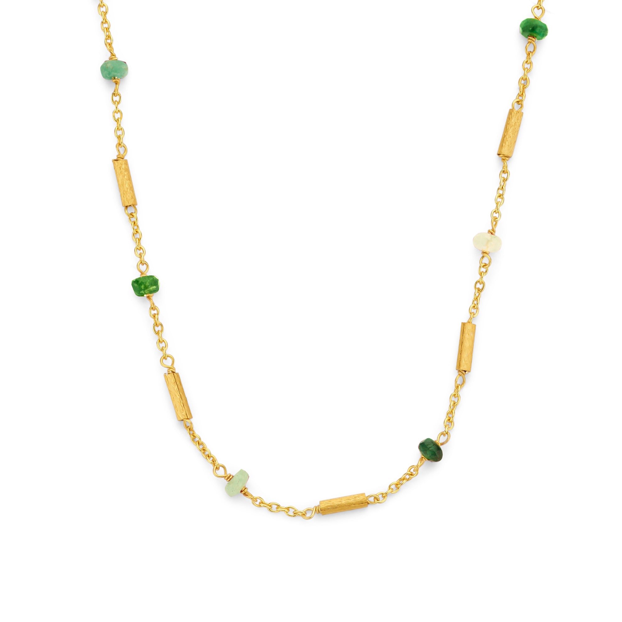 Acest colier elegant Salvatore Plata este realizat din argint 925 si placat cu aur pentru un aspect luxos. Lantul de 48 cm, cu prelungire, are o veriga de ancora atemporala si este impodobit cu smaralde verzi stralucitoare. Smaraldele, renumite pentru culoarea lor verde intens si stralucirea luminoasa, simbolizeaza intelepciunea si reinnoirea. Adauga o nota de rafinament colectiei tale de bijuterii cu acest colier feeric.
