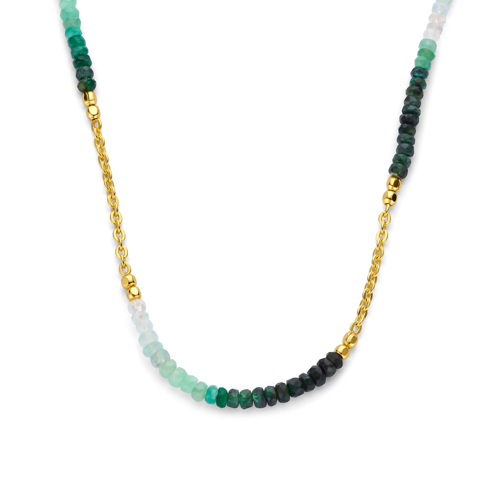 Acest colier delicat cu margele Salvatore este confectionat din argint sterling, placat cu aur galben si impodobit cu smaralde verzi vibrante. Colierul are o legatura eleganta de ancorare care curge subtil intre margele, creand un contrast jucaus si rafinat. Smaraldul verde, cunoscut pentru culoarea sa bogata si simbolismul armoniei si intelepciunii, face din aceasta piesa o adevarata atragere a ochiului. Cu o lungime de 45 cm, colierul este perfect pentru a fi purtat singur sau stratificat cu alte bijuterii Salvatore pentru un aspect stilat, stratificat.