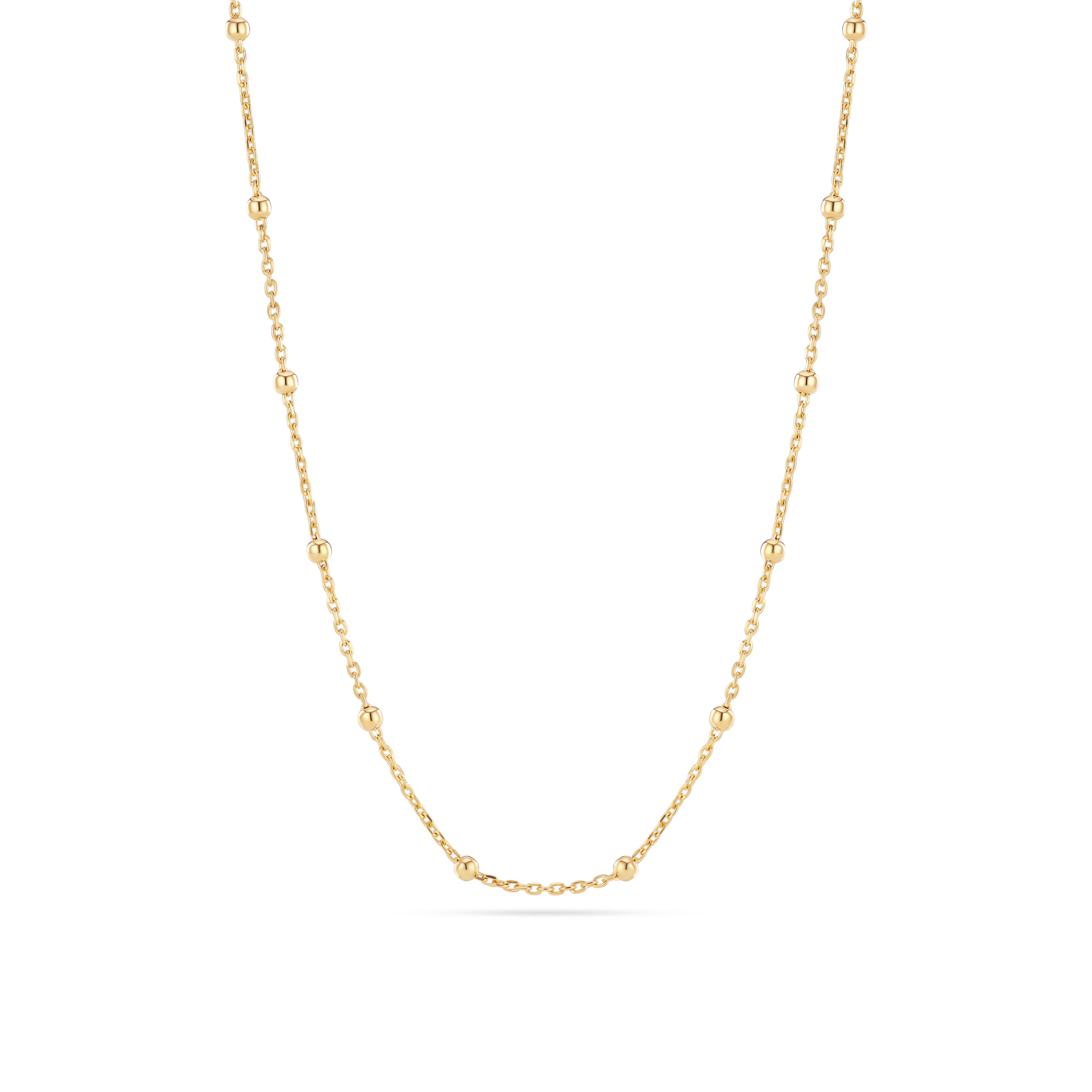 Colierul Essenza Sfere atinge un echilibru rafinat intre minimalism si eleganta jucausa. Fabricat din argint 925, cu un finisaj cald placat cu aur si o suprafata lustruita, este o atragere subtila a ochilor care imbunatateste orice tinuta. Margelele de aur dispuse uniform confera colierului un caracter ritmic si modern. Cu o lungime de 38 cm si o extensie de 5 cm, Sfere se adapteaza perfect stilului tau personal, indiferent daca este purtat singur sau stratificat cu alte coliere.