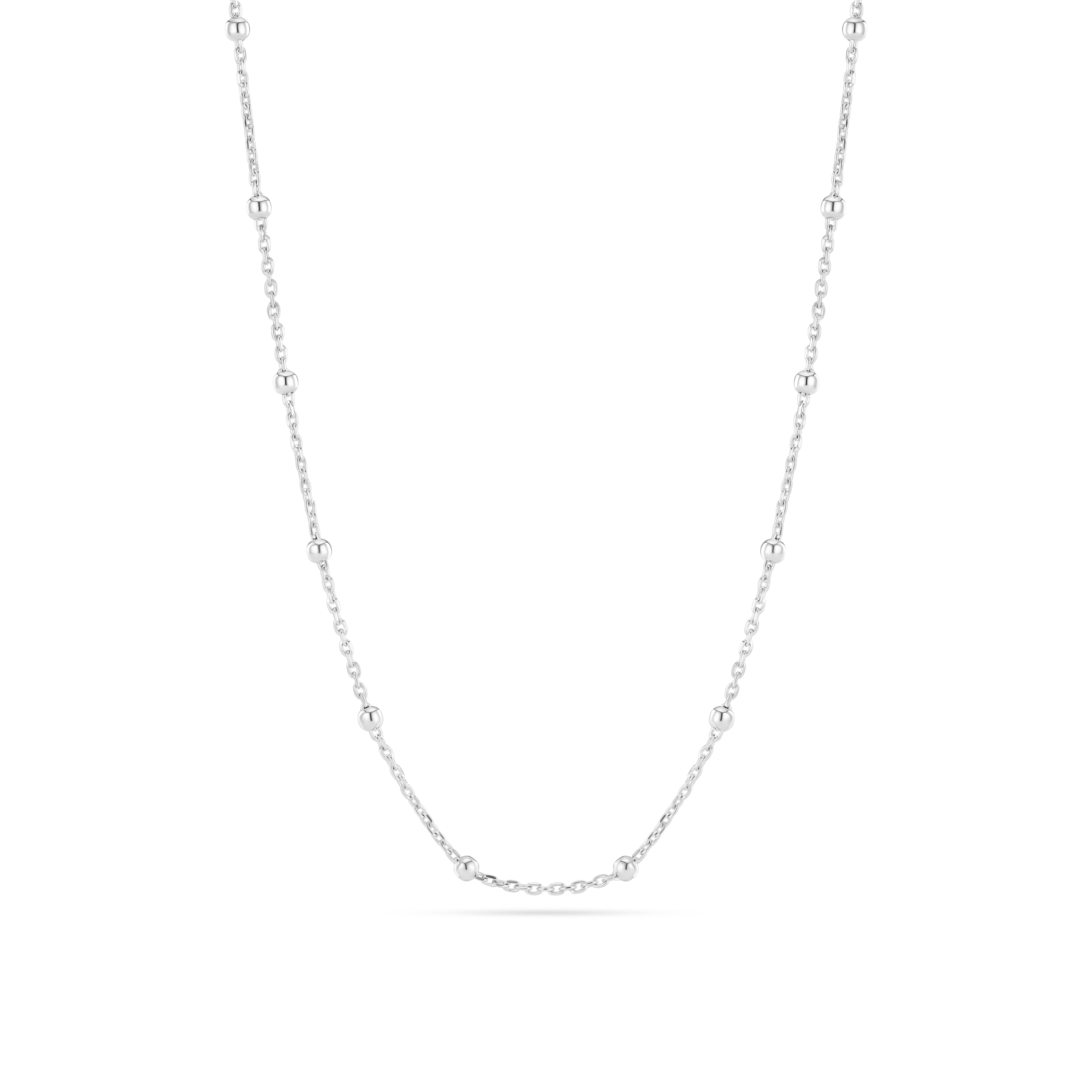 Colierul Essenza Sfere este o piesa rafinata, cu o intorsatura subtila. Fabricat din argint 925 placat cu rodiu, cu un finisaj lustruit, acest colier emana o eleganta moderna potrivita pentru orice ocazie. Decorat cu margele de argint la distanta uniforma, Sfere are un aspect jucaus, dar elegant. Colierul masoara 38 cm si are o extensie de 5 cm, permitandu-ti sa-l ajustezi fara efort la orice decolteu sau aspect stratificat.