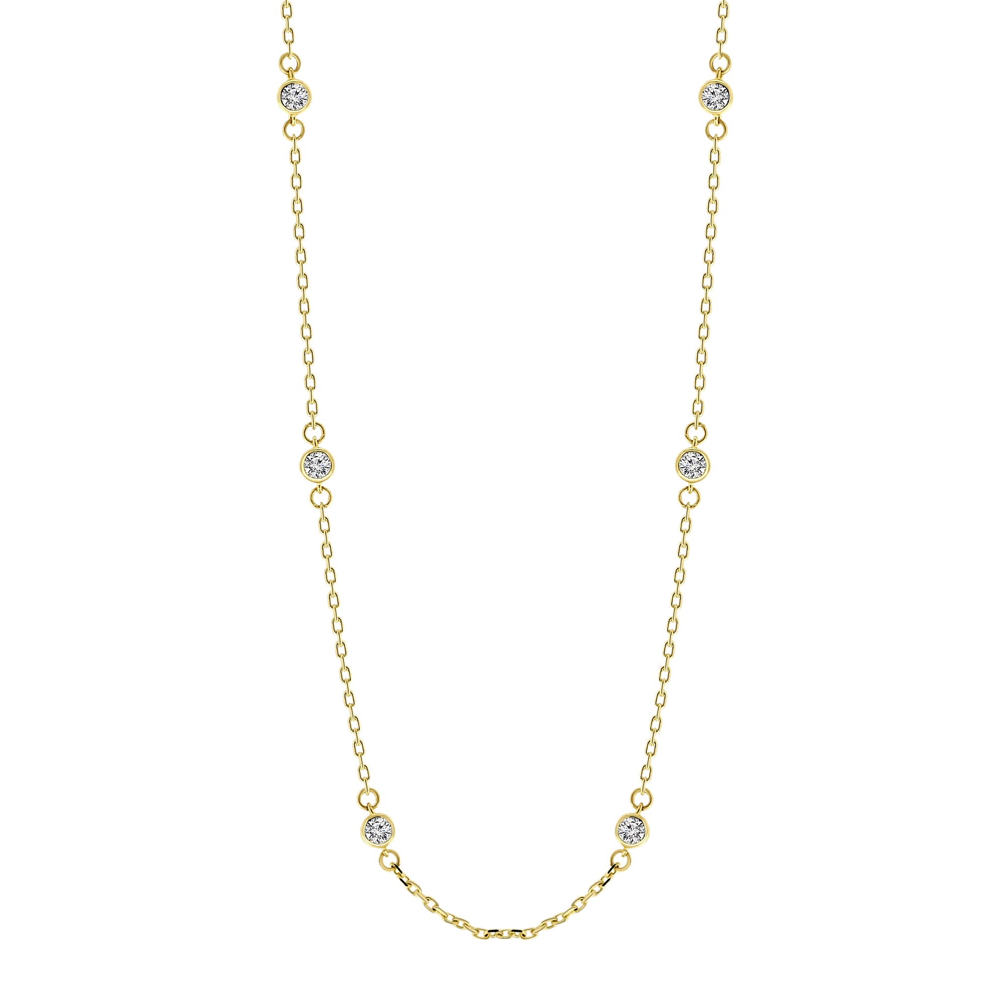 Acest colier din aur galben din colectia Valentina masoara 430 mm. Colierul de 14 karate are sapte cercuri, dintre care trei sunt fixate cu zirconiu. Combinatia de aur galben si zirconiu creeaza un colier sic.