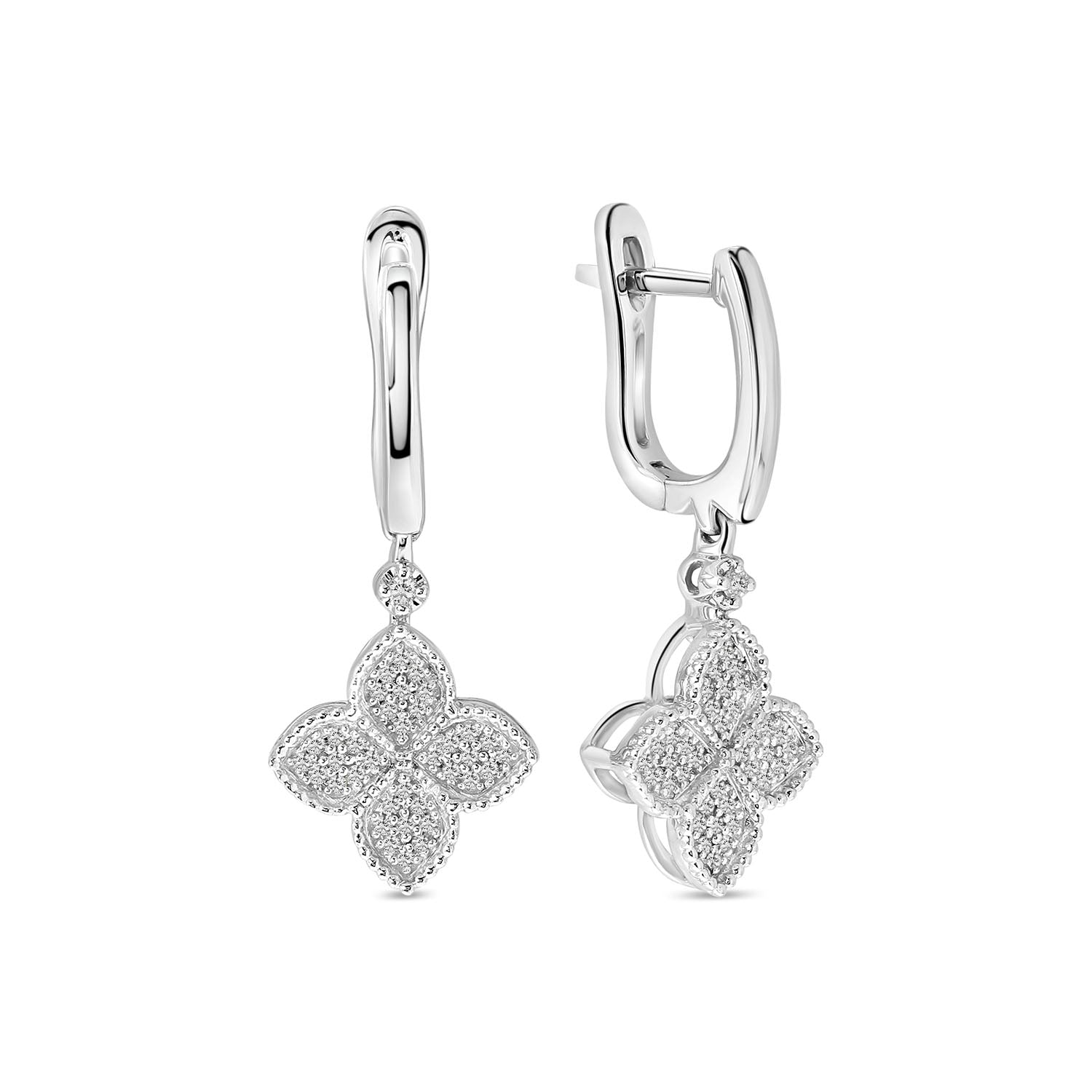 Cercei trifoi din aur alb cu diamante din colectia Diamonds by Siebel. Realizati din aur alb de 14 karate, acesti cercei au forma unui trifoi. Sunt impodobite cu 74 de diamante taiate stralucitor. Asociati acesti cercei cu bijuterii asortate din colectie pentru a va completa look-ul.