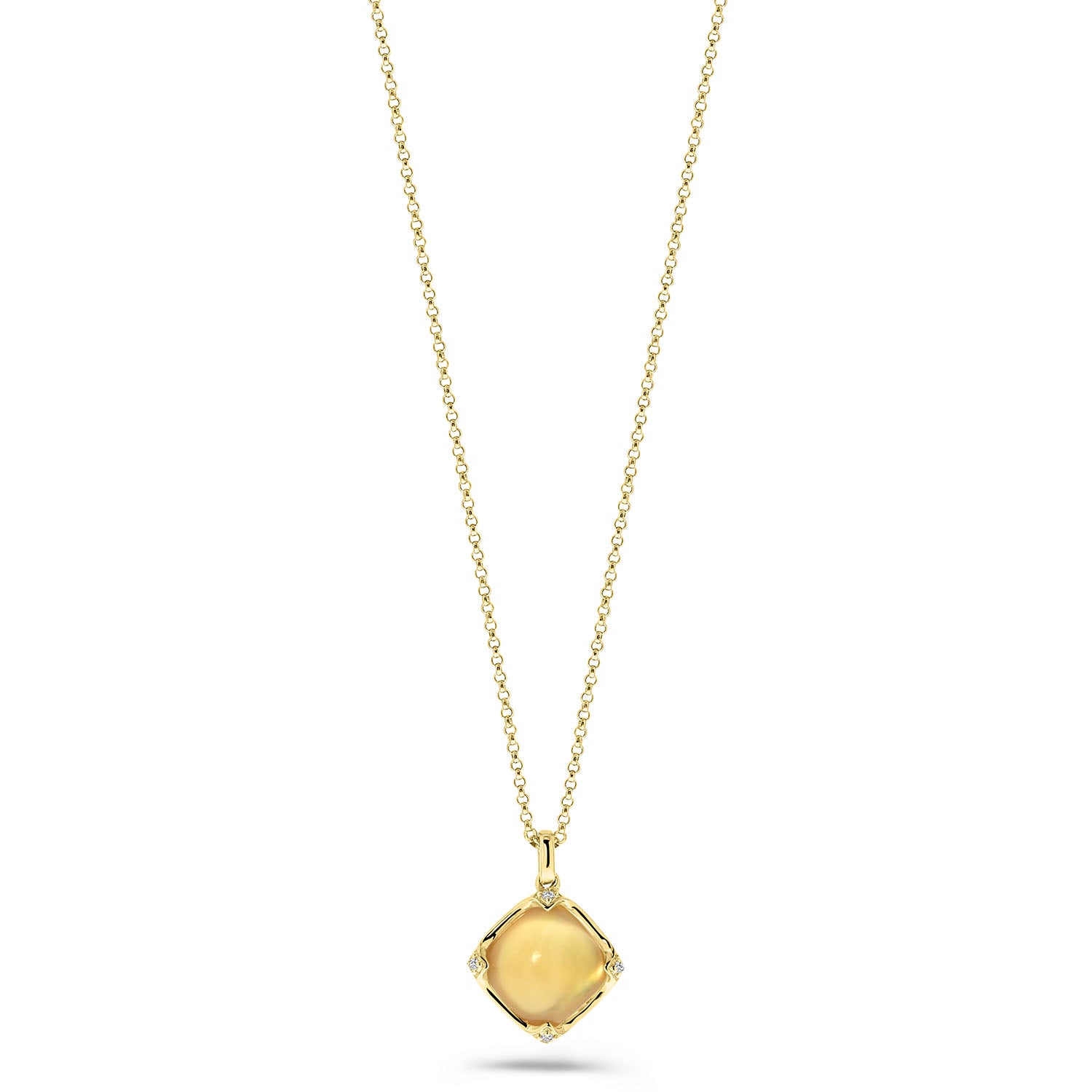 Colier din aur galben cu citrin din colectia Diamonds by Siebel. Fabricat din aur galben de 14 karate, colierul are un pandantiv frumos. Pandantivul este fixat cu un citrin sferic si are un diamant frumos pe fiecare colt. Colierul are 45 cm lungime. Asociati colierul cu cerceii si inelul asortate pentru a va completa look-ul.