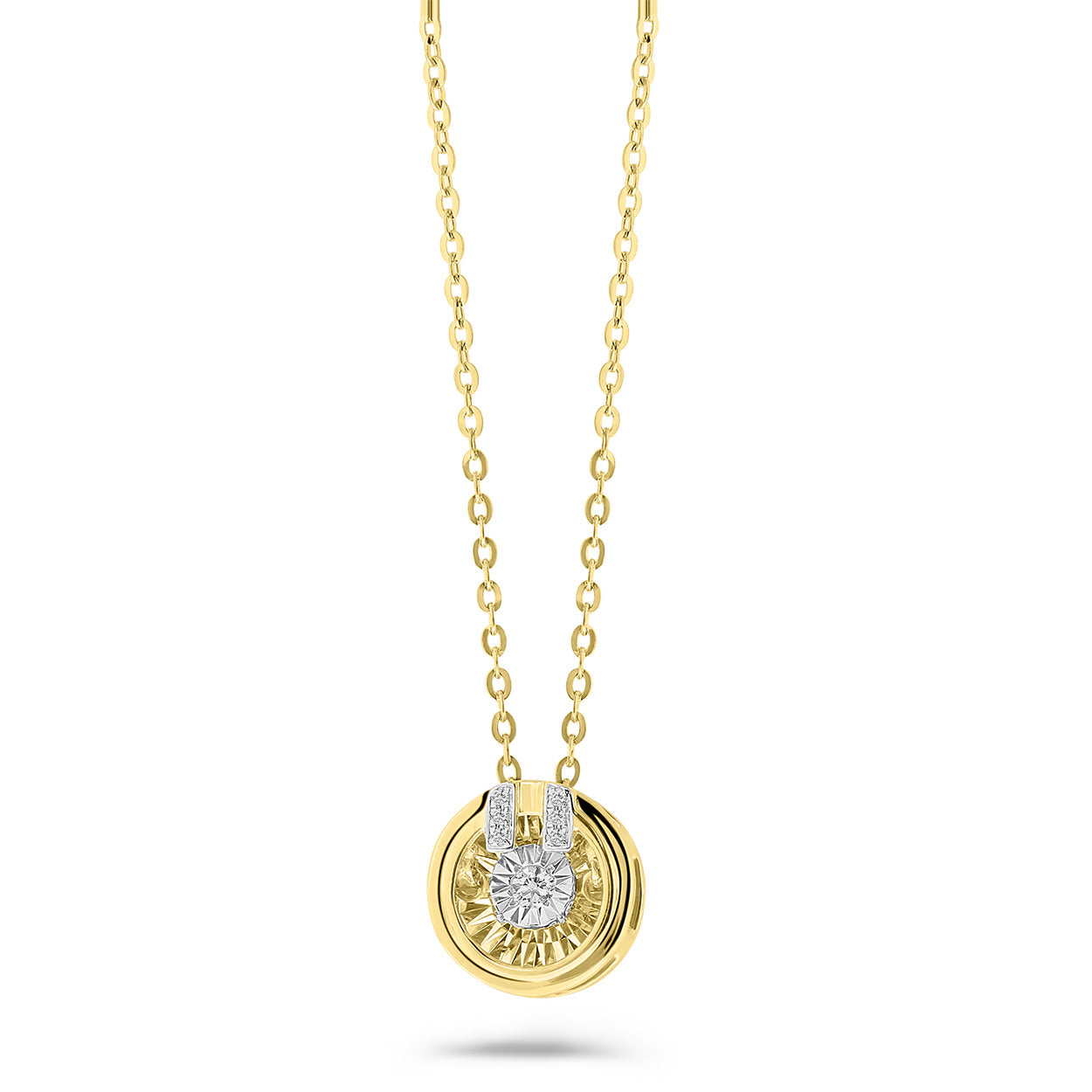 Colier rotund din aur galben cu diamante din colectia Diamonds by Siebel. Fabricat din aur galben de 14 karate, colierul are un pandantiv rotund fermecator, cu sapte diamante uimitoare taiate stralucitor intr-o montura din aur alb. Colierul are 45 cm lungime. Asociaza colierul cu alte piese din colectie pentru a-ti completa look-ul.