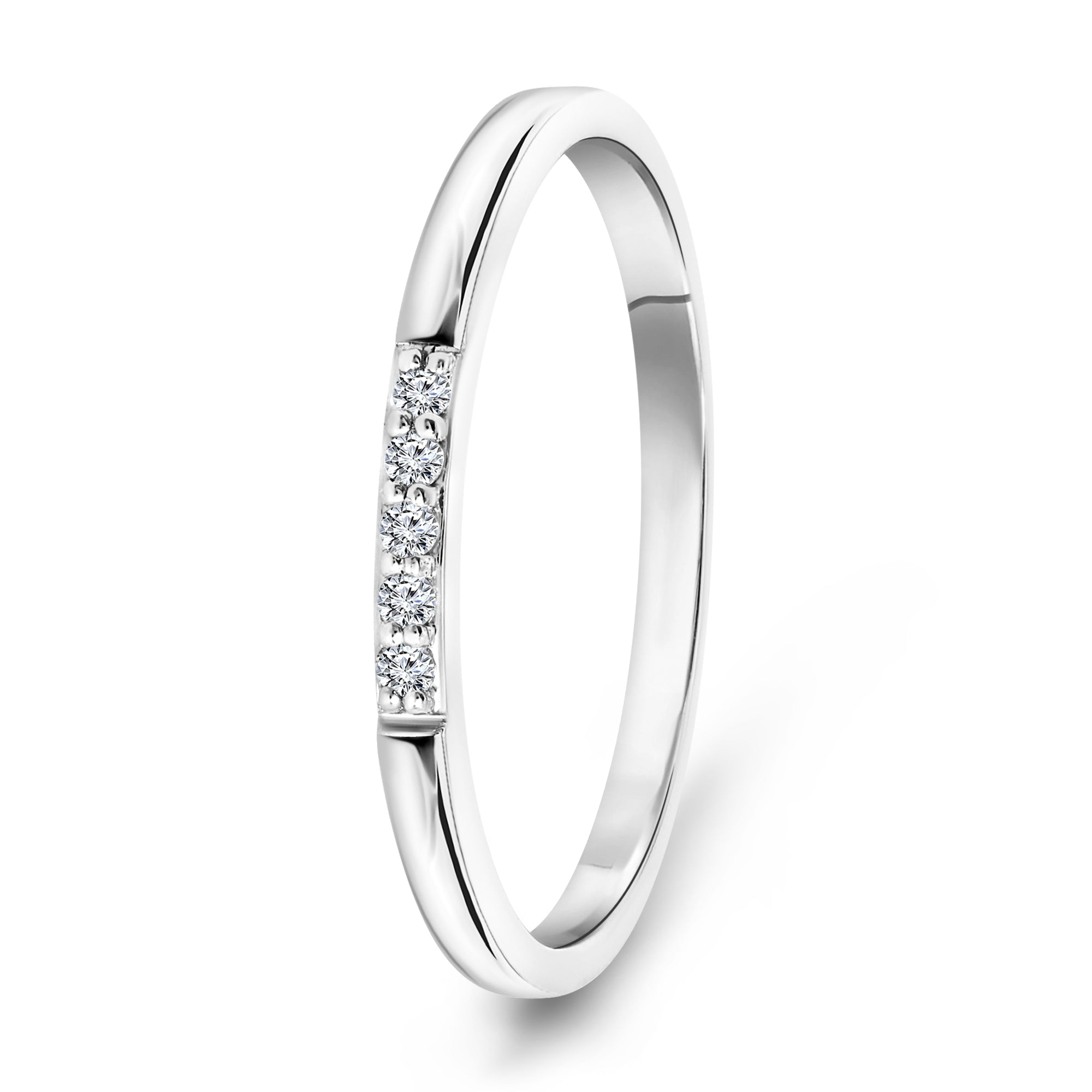 Inel din aur alb de 14 karate din colectia Diamonds by Siebel. Inelul este sertat cu cinci diamante in valoare totala de aproximativ 0,04 ct.