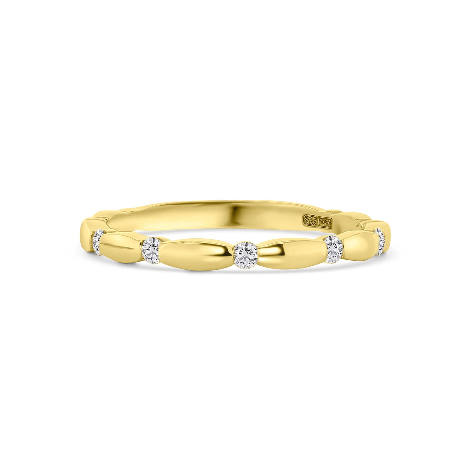 Inel din aur galben din colectia Diamonds by Siebel. Acest inel este realizat din aur galben de 14 karate si sert cu cinci diamante taiate stralucitor. Imbina acest inel cu alte piese din colectie.