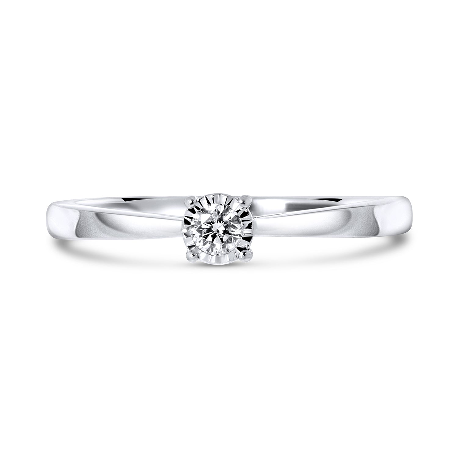 Inel solitar din aur alb de 14 karate din colectia Diamonds by Siebel. Inelul este sertat cu un diamant taiat stralucitor de aproximativ 0,10 ct.