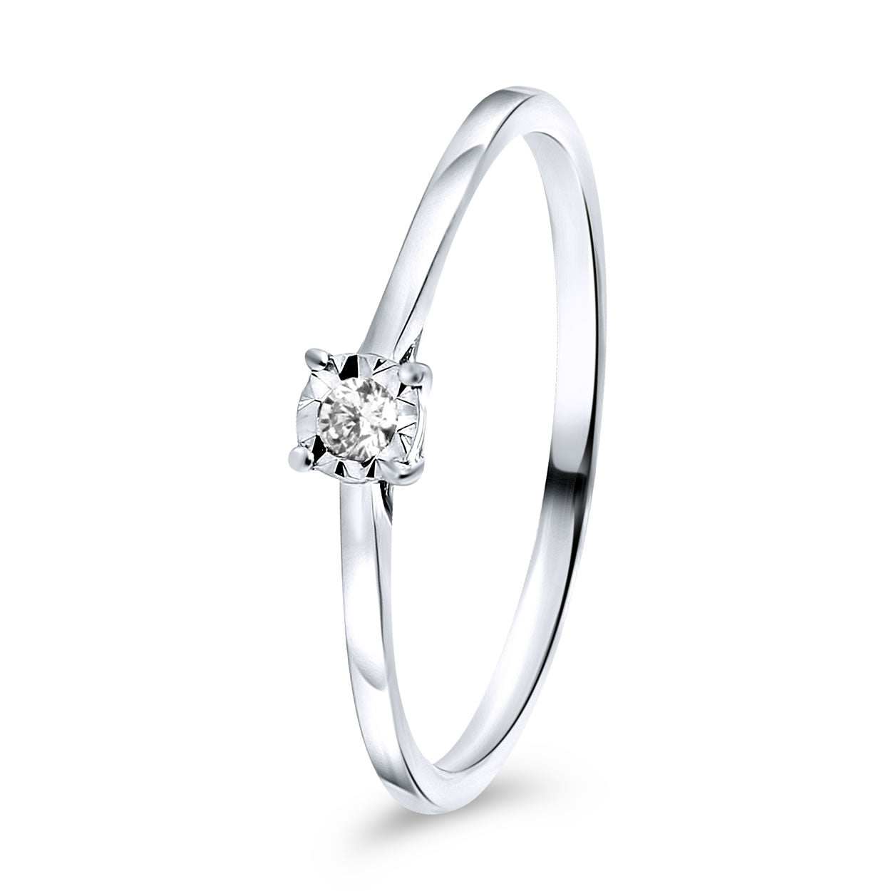 Un inel solitar din aur cu pana de 14 karate din colectia Diamonds by Siebel. Inelul este sertat cu un diamant taiat stralucitor.