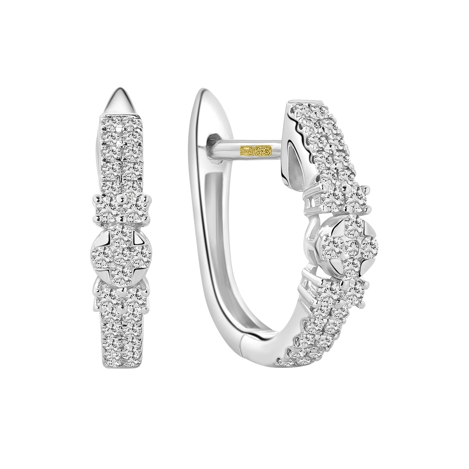 Cercei din aur alb cu diamante din colectia Diamonds by Siebel. Confectionati din aur alb de 14 karate, acesti cercei sunt impodobiti cu 58 de diamante uimitoare taiate stralucitor. Asociati-le cu bijuterii asortate din colectie pentru a va completa look-ul.
