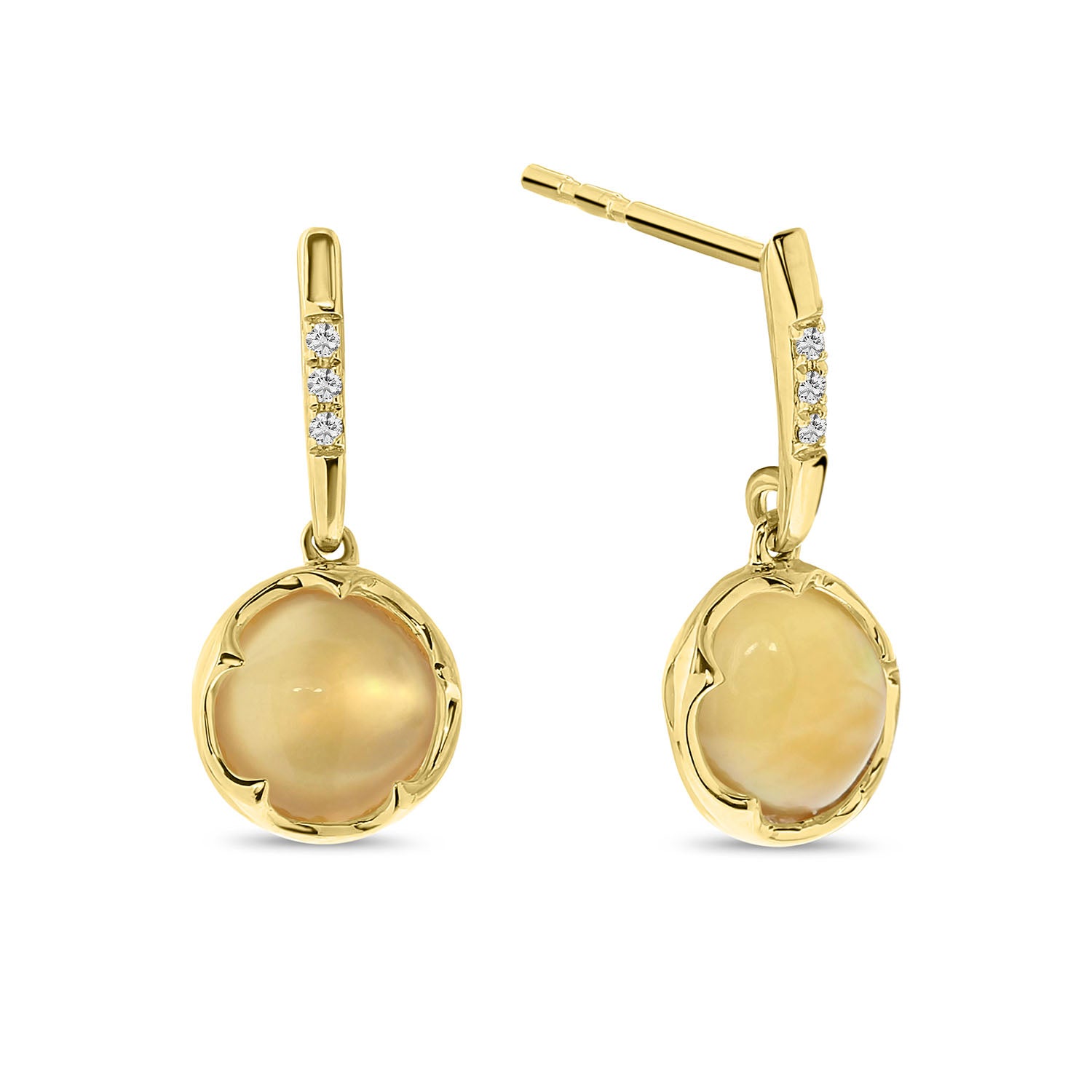 Cercei din aur galben cu citrin si diamante din colectia Diamonds by Siebel. Confectionati din aur galben de 14 karate, acesti cercei prezinta un citrin galben rotund si diamante. Asociati cerceii cu colierul si inelul asortate pentru a va completa look-ul.