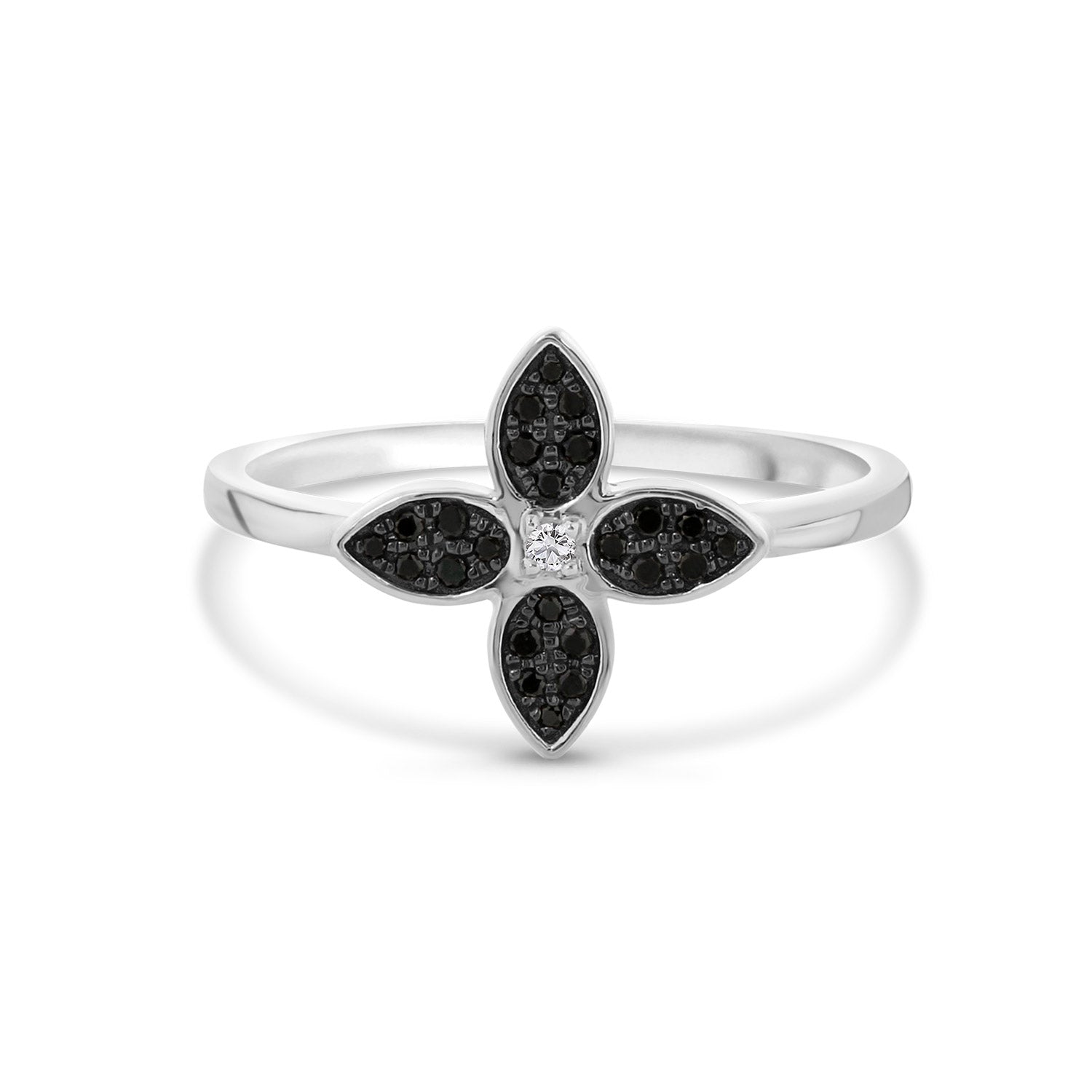 Inel cu trifoi din aur alb cu diamante negre din colectia Diamonds by Siebel. Fabricat din aur alb de 14 karate si sertat cu diamante negre uimitoare, inelul are forma unui trifoi. Combinati-l cu alte bijuterii din colectie.