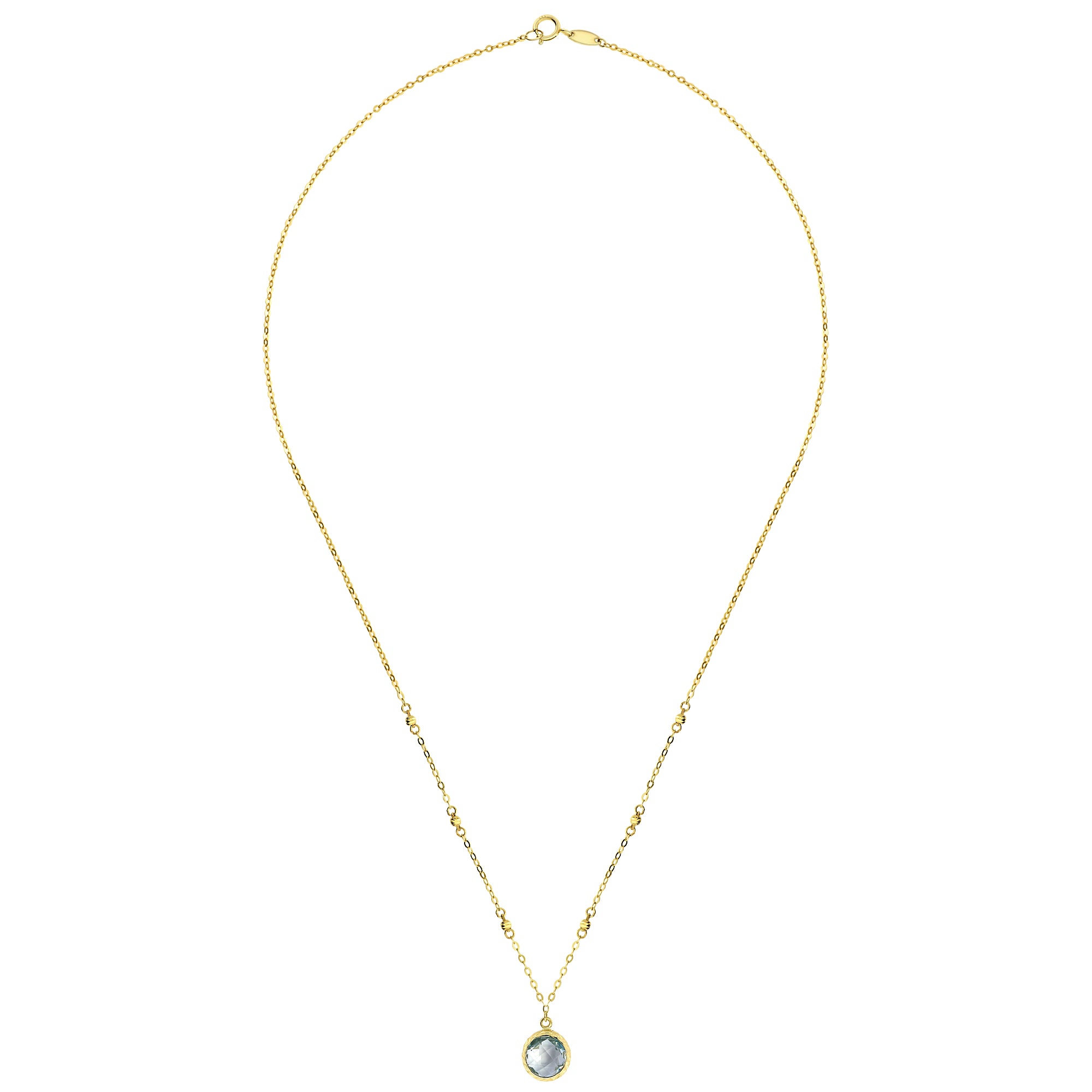 Colier din aur galben de 14 karate cu pandantiv din colectia Gold by Siebel. Pandantivul este fixat cu un topaz albastru.