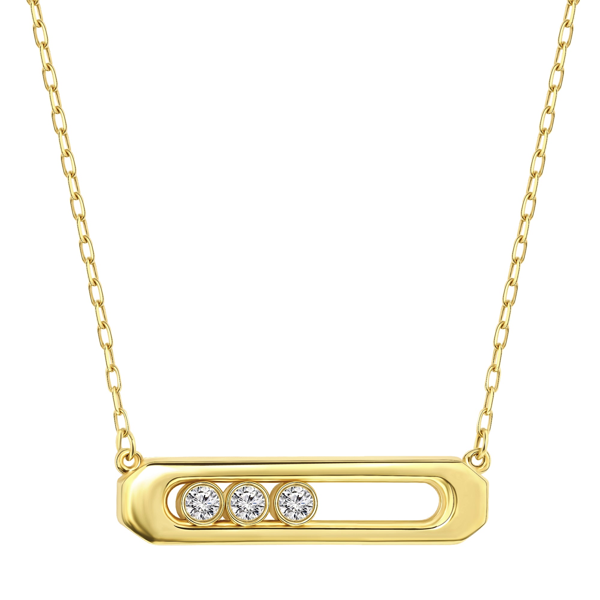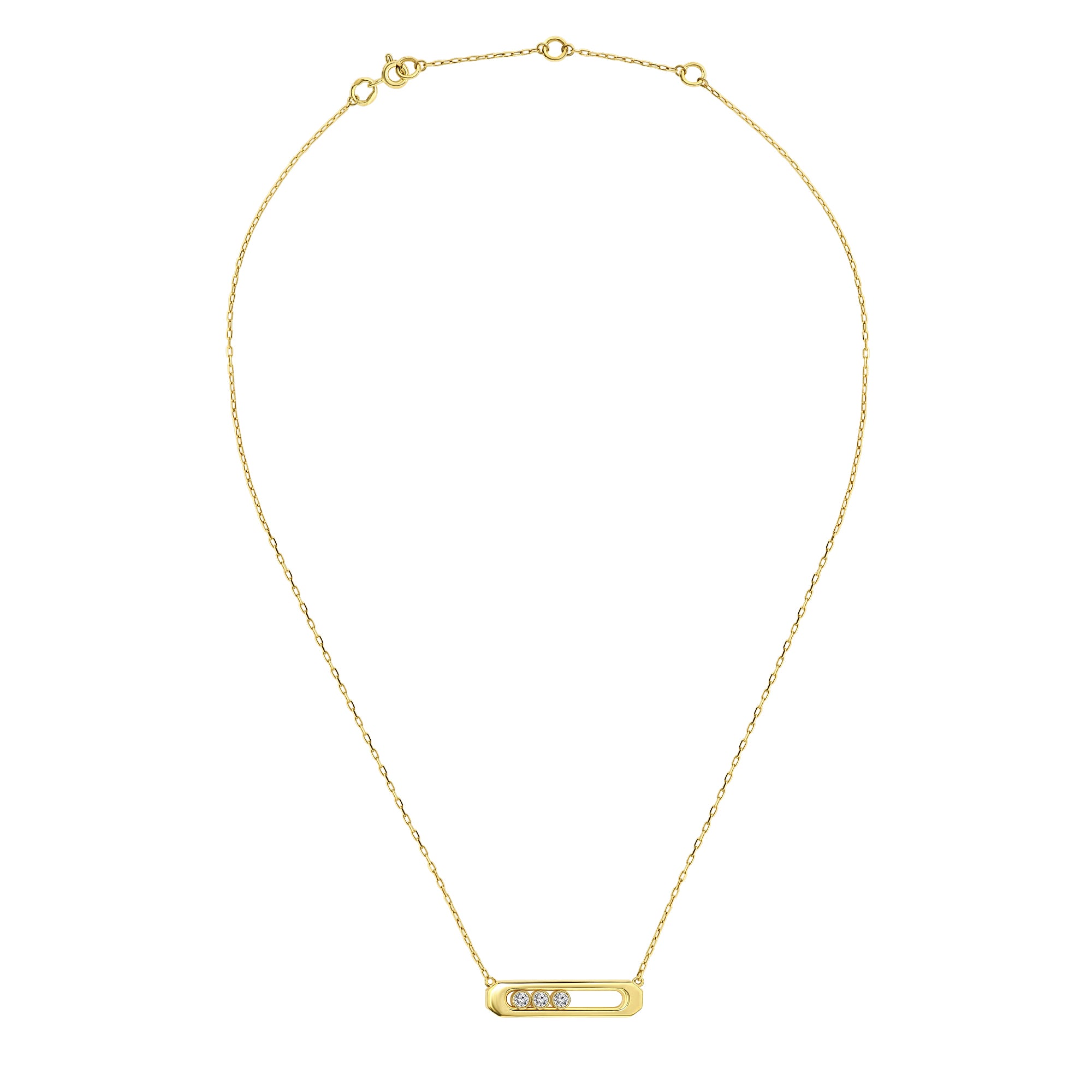 Colier din aur galben de 14 karate din colectia Gol by Siebel. Aplicatia dreptunghiulara, ajurata, este fixata cu trei pietre de zirconiu in rame rotunde.