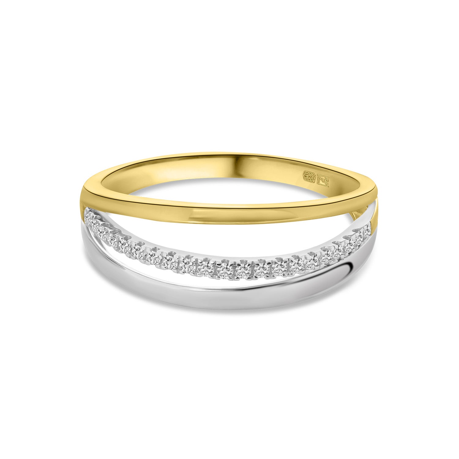 Inel cu diamante in doua tonuri din colectia Diamonds by Siebel. Fabricat din aur alb si galben de 14 karate, inelul este sertat cu 21 de diamante uimitoare taiate stralucitor. Imbina acest inel cu alte piese din colectie.