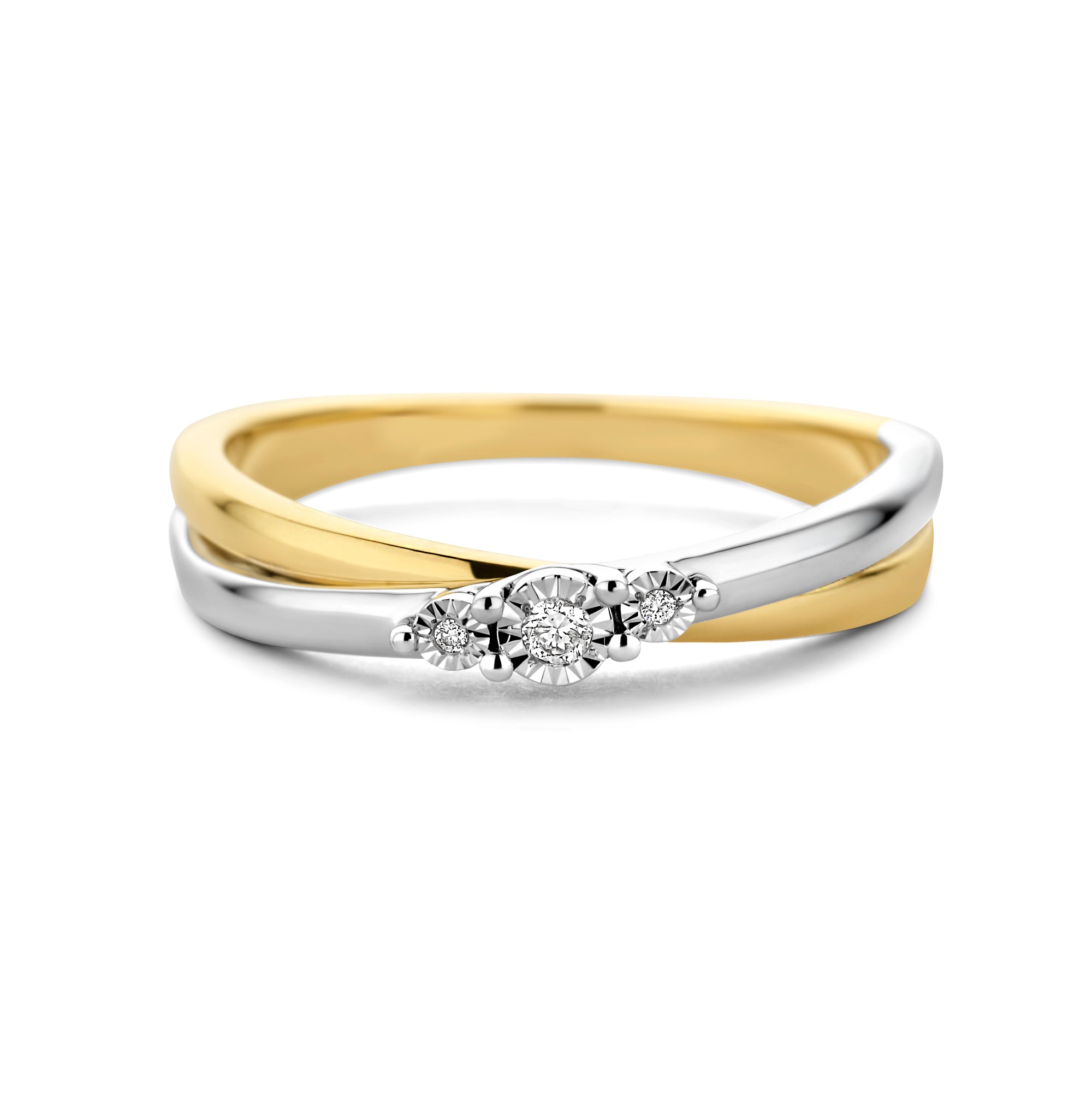 Inel bicolor din colectia Miracle. Inelul este sertat cu un frumos diamant alb taiat stralucitor. Asociati-l cu alte bijuterii din colectie pentru a va completa look-ul.