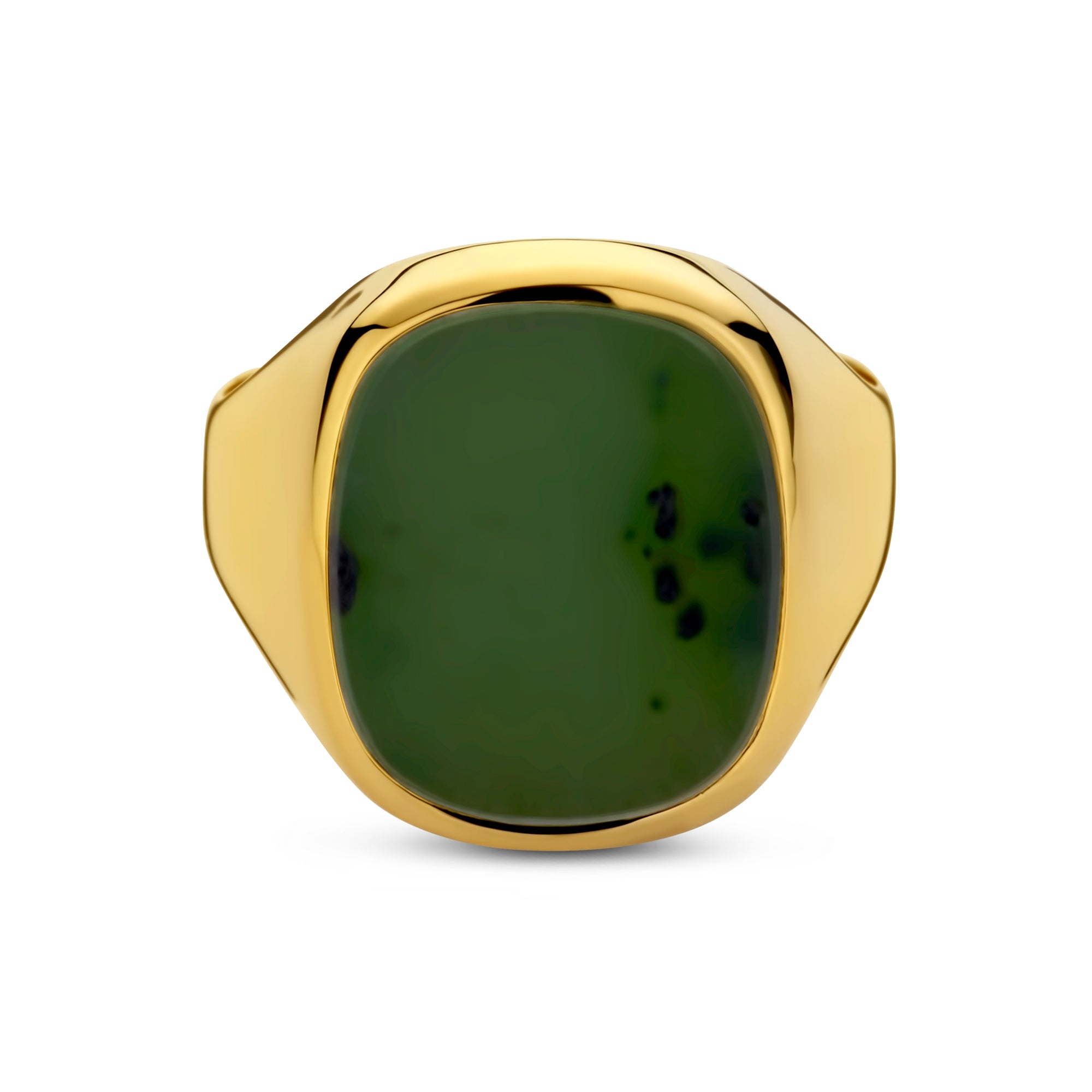 Inel cu sigiliu din aur galben de 14 karate din colectia Gold by Siebel. Inelul este fixat cu o singura piatra de jad verde.