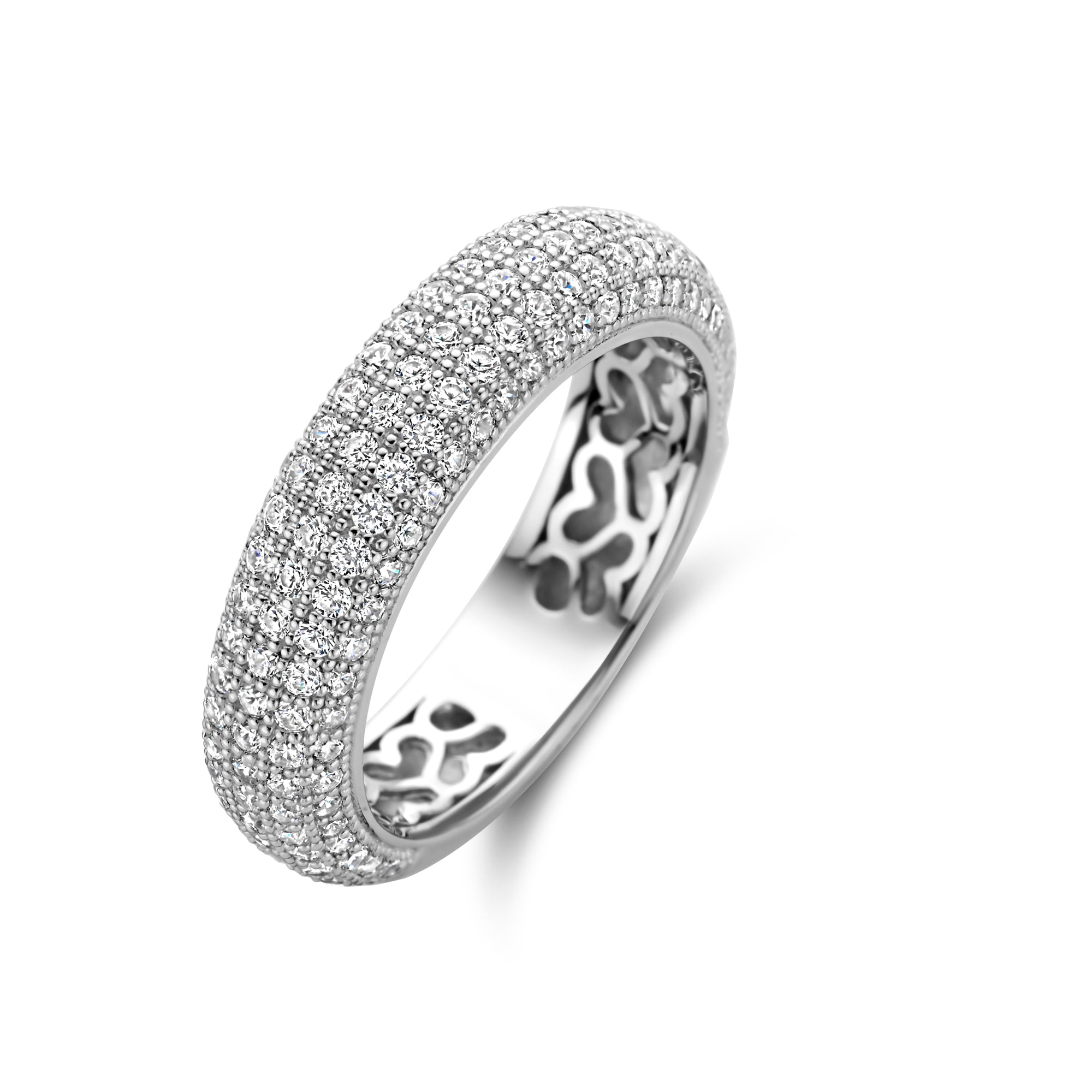 Acest inel contemporan din colectia Trendy Chic este realizat din argint 925. Este complet fixat cu 155 de cristale de zirconiu alb. Cristalele izbitoare din zirconiu confera inelului un aspect luxos si il fac un plus frumos pentru alte colectii Siebel.