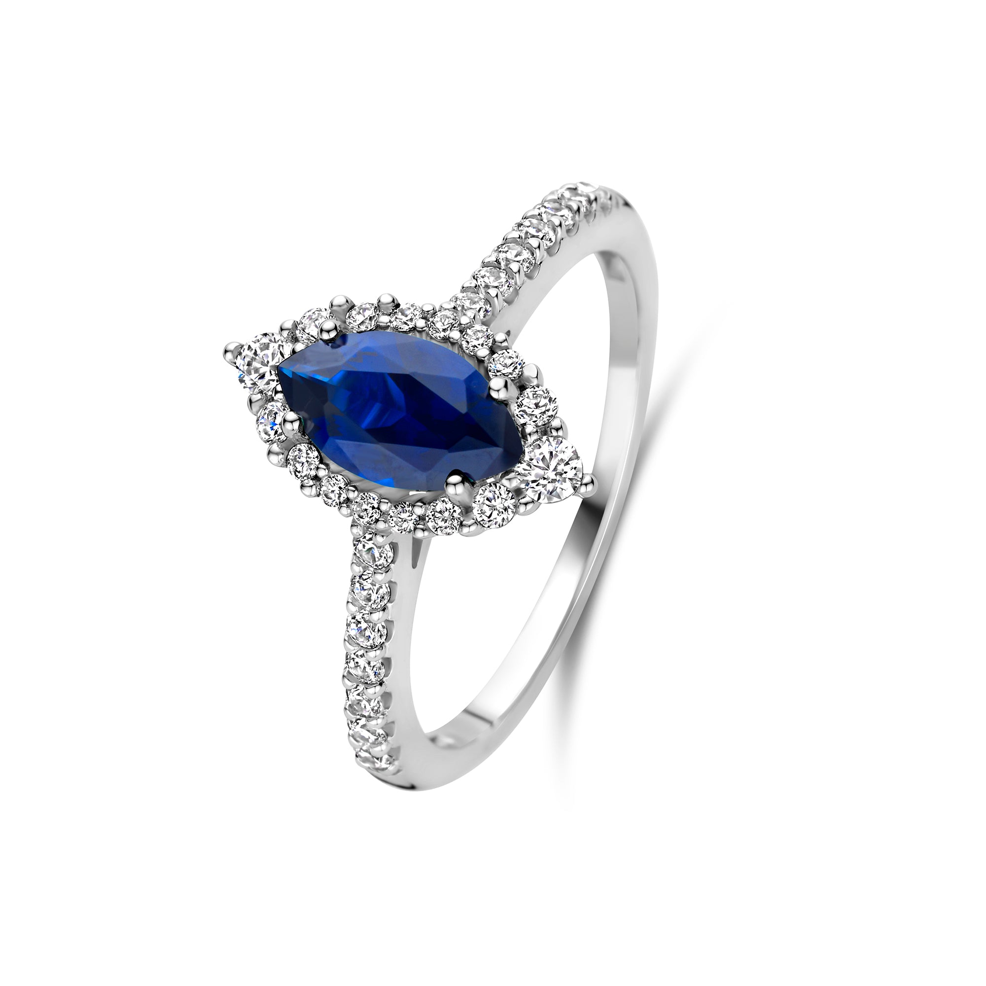 Inelul Audrey Collection este o piesa eleganta, realizata din argint 925, cu un finisaj rodiu pentru un plus de stralucire si durabilitate. Piesa centrala a inelului este un zirconiu cubic albastru in forma de marchiza, inconjurat de pietre mici de zirconiu cubic alb care creeaza un efect stralucitor in jurul pietrei centrale. Acest inel se asorteaza perfect cu cerceii si colierul asortat din aceeasi colectie, creand un aspect armonios si elegant.