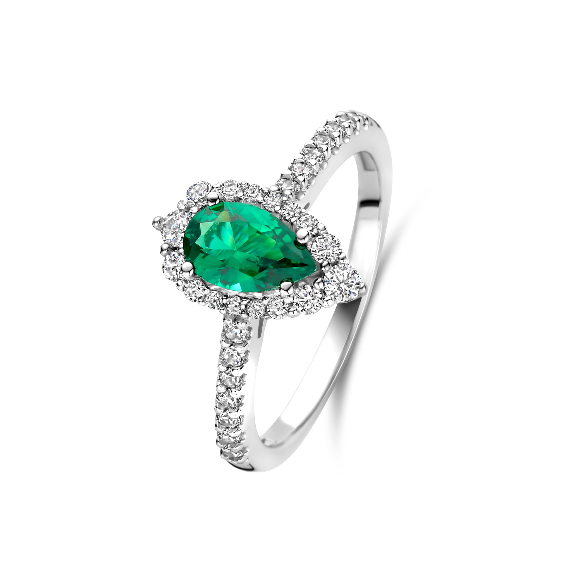 Inelul anturaj din The Audrey Collection este un inel elegant cu un zirconiu verde mare, in forma de para, ca piesa centrala, inconjurat de zirconiu alb. Fabricat din argint 925, inelul este placat cu rodiu, ceea ce ii confera o stralucire frumoasa si protejeaza impotriva patarii. Aceasta combinatie de materiale si pietre face din inel o piesa izbitoare si eleganta, care cu siguranta va intoarce capetele.