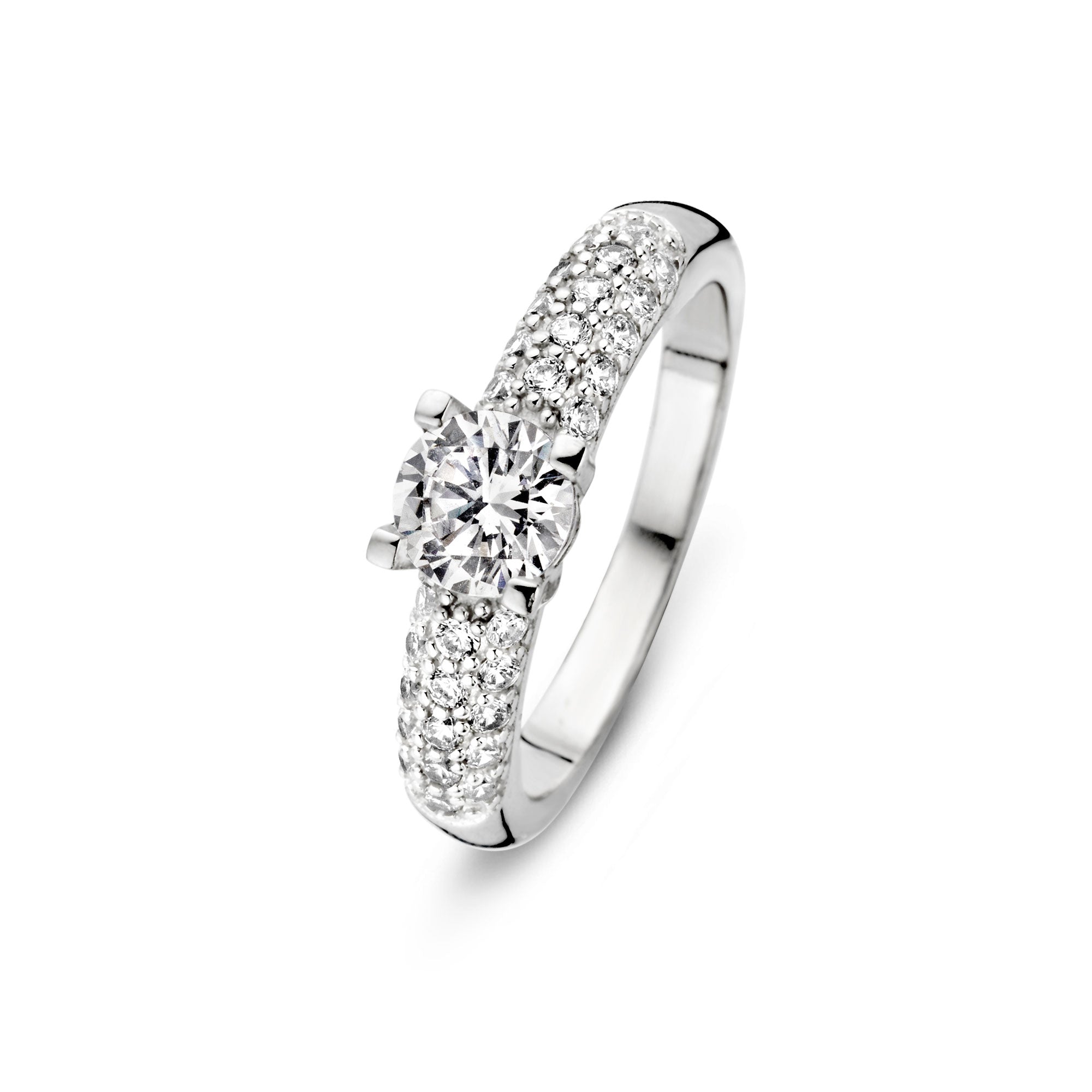 Inel din argint 925 din colectia Trendy Chic. Inelul este intins pe jumatate cu trei randuri de pietre mici de zirconiu cubic. Un cadru central patrat detine un singur zirconiu cubic mare. Potrivit pentru toate ocaziile, atat pentru uzura festiva, cat si pentru cea de zi cu zi.