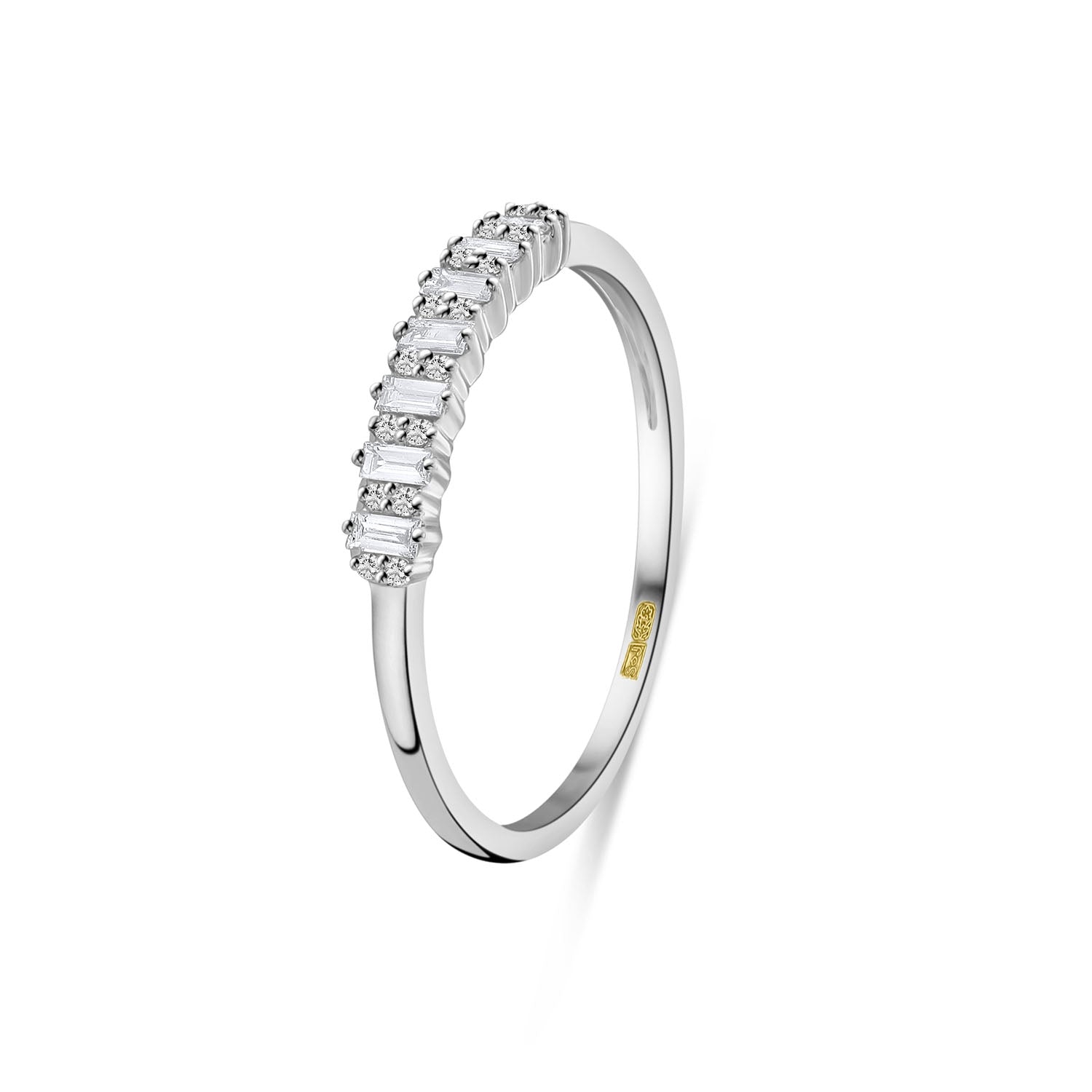 Inel din aur alb cu bagheta si diamante taiate stralucitor din colectia Ice. Fabricat din aur alb de 14 karate, inelul este sertat cu 23 de diamante stralucitoare, fiecare cu o bagheta si o taietura stralucitoare. Asociati inelul cu bijuterii asortate din colectie pentru a va completa look-ul.