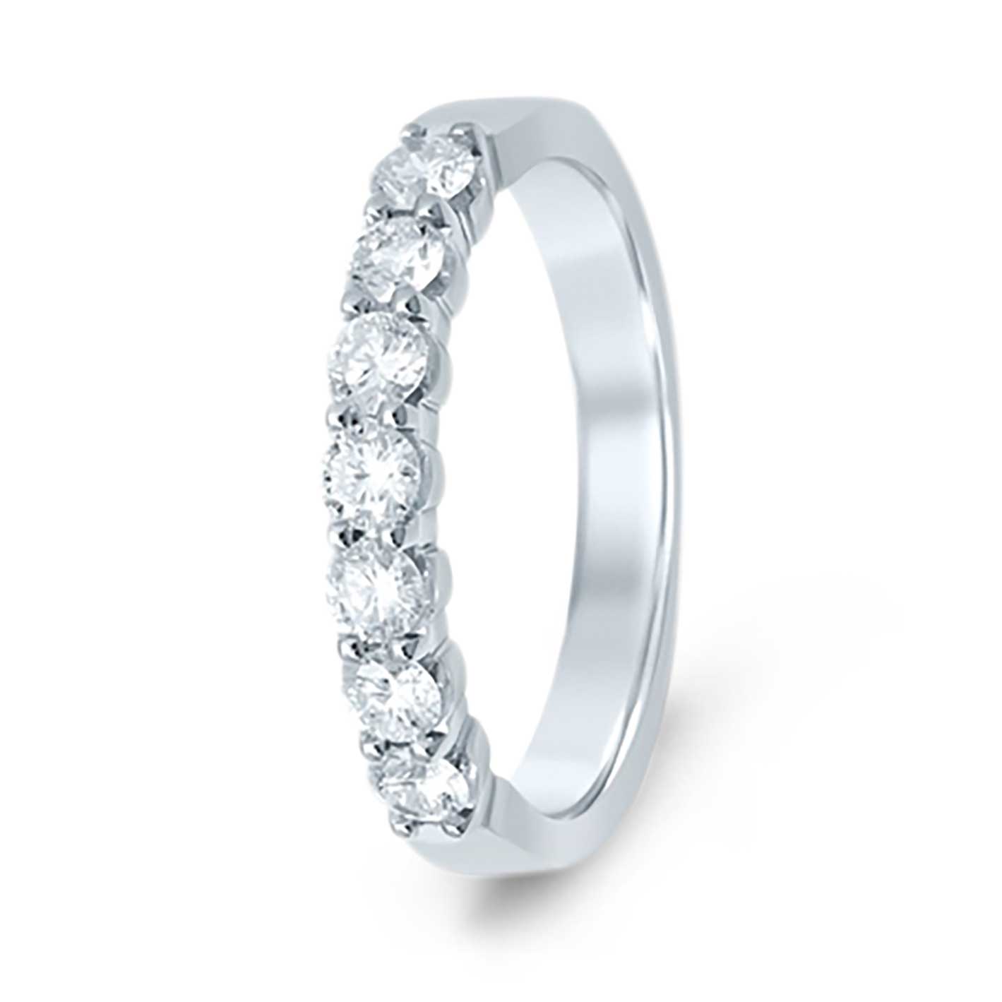 Acest inel elegant cu diamant este realizat din aur alb de 14 karate si sert cu sapte diamante naturale stralucitoare taiate stralucitor, cu o greutate totala de 0,50 ct. Banda de aur alb emana frumusete atemporala si evidentiaza stralucirea fiecarui diamant. Perfect pentru o verigheta rafinata, un inel elegant sau ca o completare uimitoare la inelul tau de logodna. Pentru cei care cauta o declaratie subtila cu o stralucire bogata.