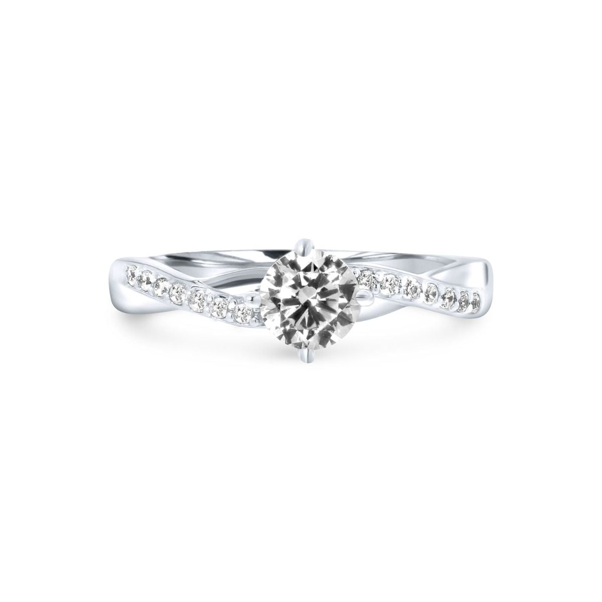 Acest inel este de la Gold by Siebel. Este realizat din aur alb de 14 karate si decorat cu 14 pietre de zirconiu cubic. Are un design impletit.