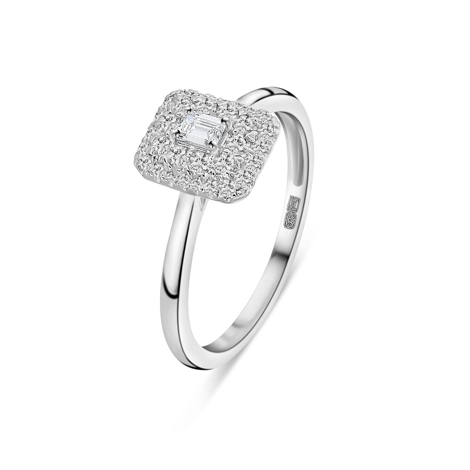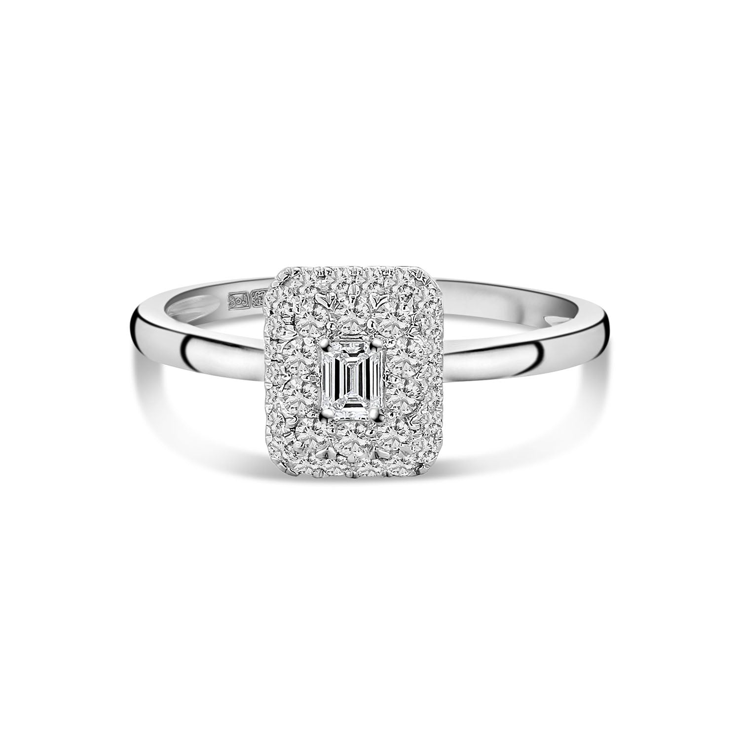 Elegant, stilat si surprinzator de rafinat - acest inel din aur alb de 14 karate este simbolul elegantei moderne. In inima sa se afla un uimitor diamant taiat in smarald, cultivat in laborator, liniile alungite si stralucirea stralucitoare emanand un lux subtil. Este incadrat de un pavé orbitor de diamante taiate stralucitor, cultivate in laborator, care impreuna accentueaza designul patrat. Un total de 33 de diamante cultivate in laborator sunt setate, creand 0,50 ct de frumusete stralucitoare. Banda de inel subtire pastreaza designul usor si rafinat, facand aceasta piesa fara efort de purtat - de la ocazii casual sic pana la ocazii formale si festive.