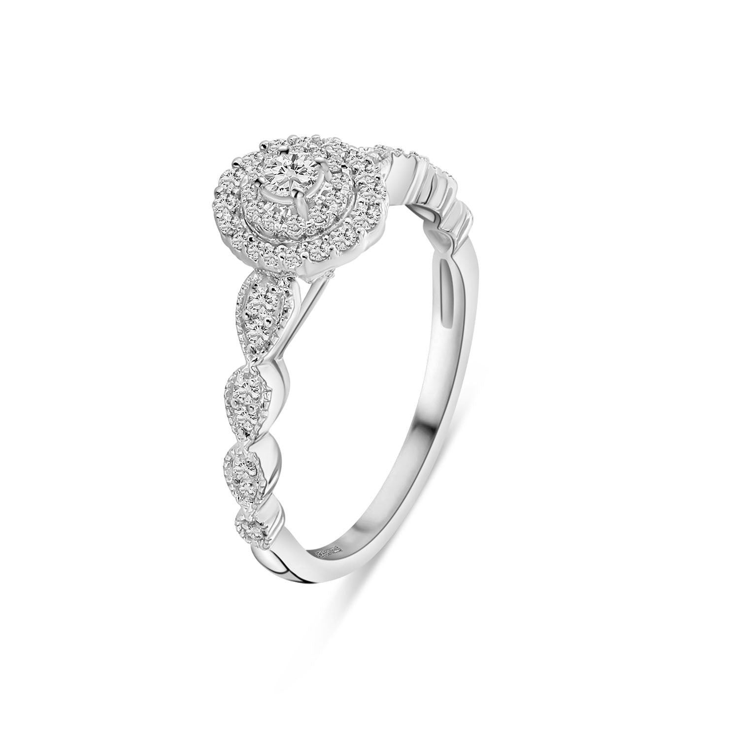 Acest inel fermecator combina eleganta cu luxul modern. Ornat cu 51 de diamante taiate stralucitor, cultivate in laborator, cu o greutate totala de 0,43 ct, acest design emana o clasa pura. Piatra centrala rotunda este inconjurata de un halou dublu, in timp ce banda cu diamante cu design elegant adauga o nota rafinata. Perfect ca un cadou romantic sau o piesa atemporala.