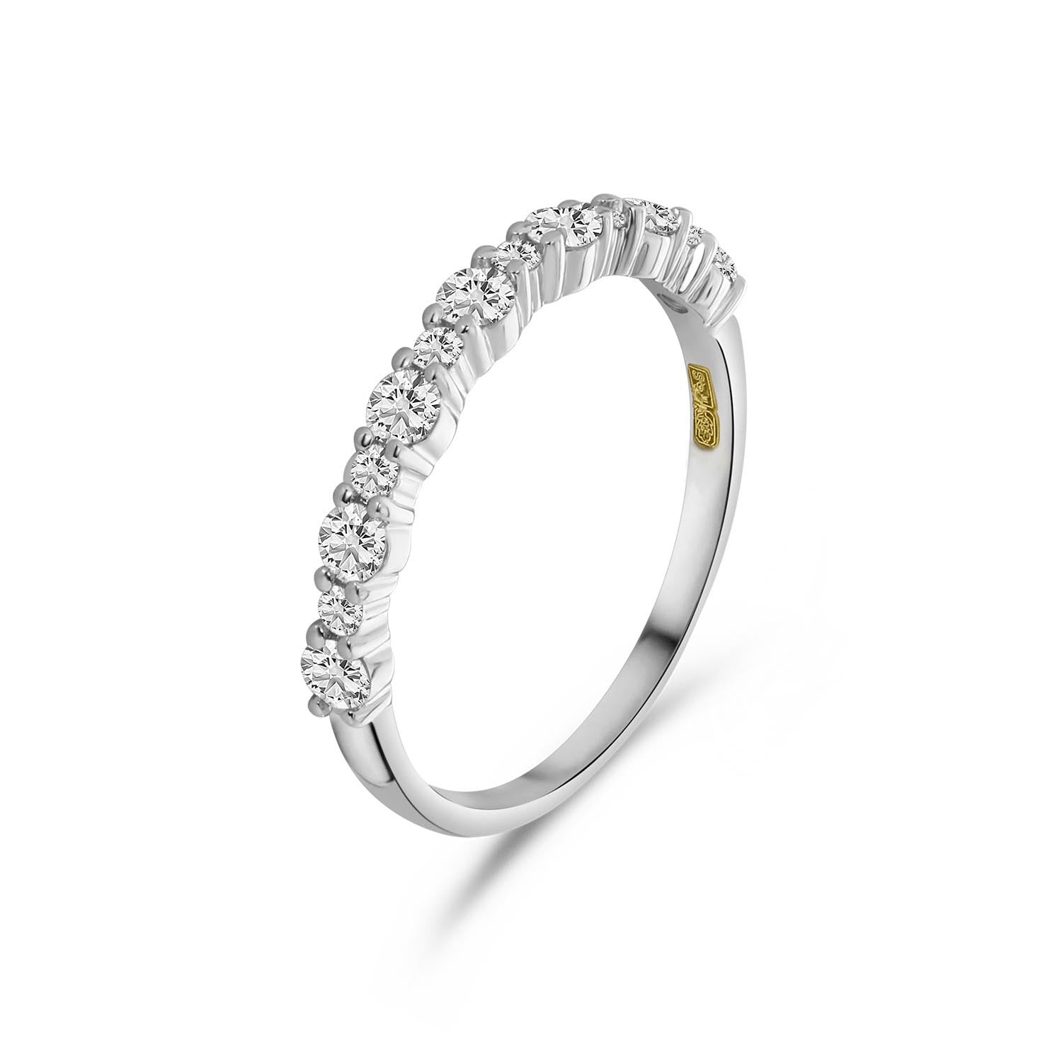 Acest inel rafinat din colectia Millennium este o oda stralucitoare catre eleganta moderna. Fabricat din aur alb de 14 karate si sertat cu treisprezece diamante taiate stralucitor, cultivate in laborator, care danseaza peste deget ca o panglica stralucitoare. Inelul ofera echilibrul perfect intre lux subtil si stralucire izbitoare, facandu-l ideal ca verigheta sau o completare eleganta a unui inel solitar. Asociati-l cu alte piese din colectie pentru a crea un ansamblu atemporal plin de fler personal.