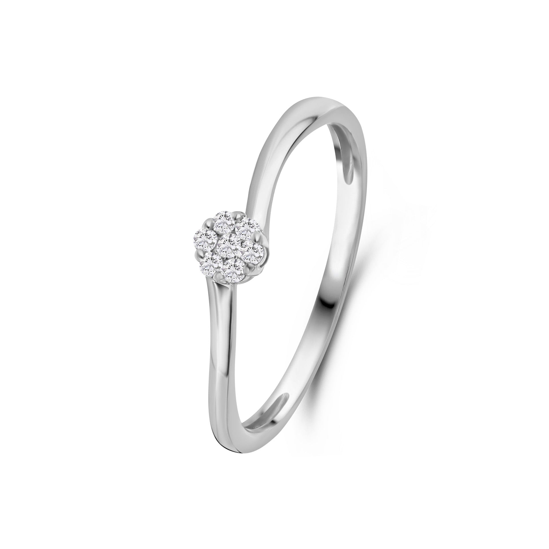 Inel din aur alb de 14 karate din colectia Diamonds by Siebel. Inelul este incrustat cu 7 diamante taiate briliant. Greutatea totala a diamantelor este de aproximativ 0,07 ct.