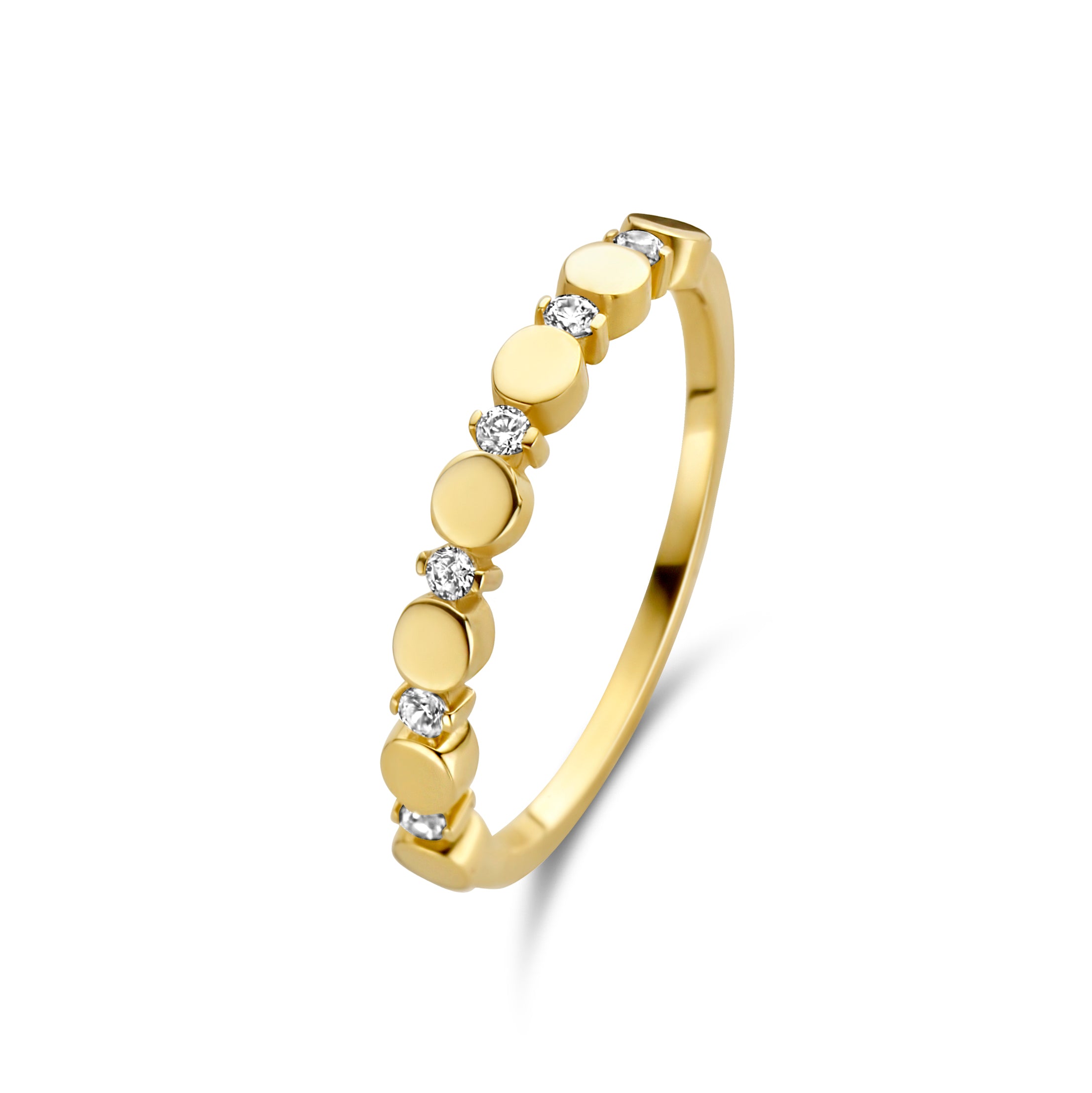 Inel din aur galben de 14 karate din colectia Gold by Siebel. Inelul are sase pietre de zirconiu cu un diametru de 1,5 mm.