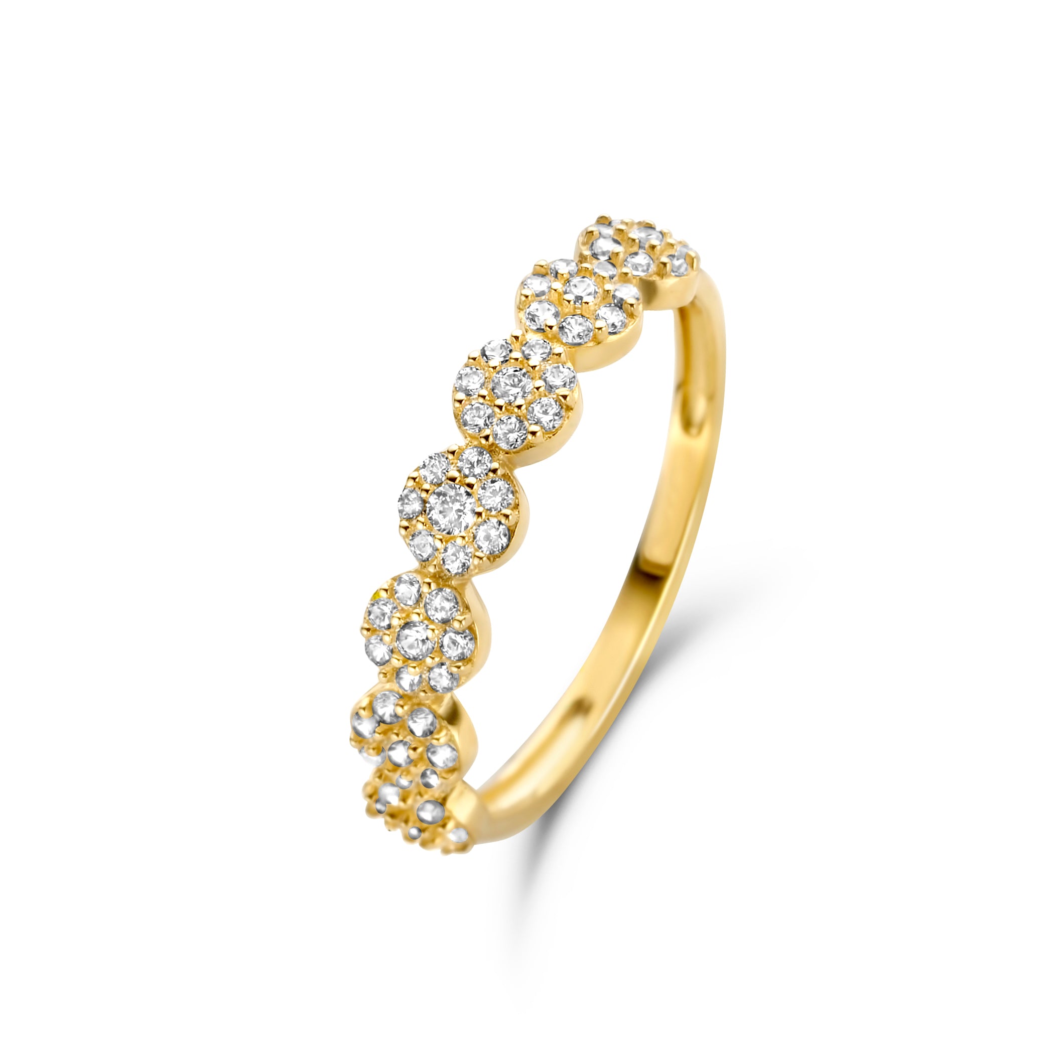 Inel din aur galben cu zirconiu de la Gold by Siebel. Inelul este decorat cu 56 de zirconii albe.