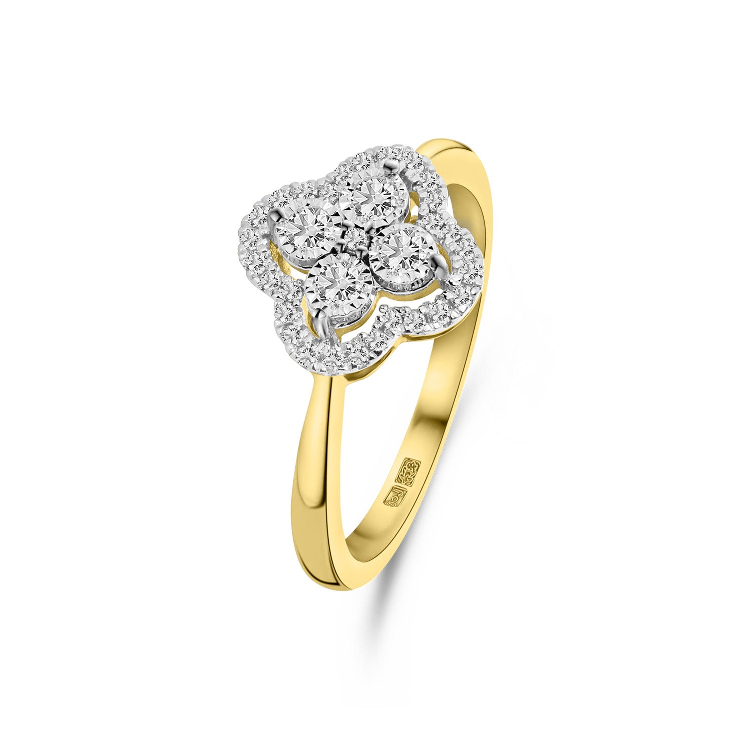 Inel din aur galben cu trifoi si diamant din colectia Millennium. Realizat din aur galben de 14 karate, inelul prezinta 33 de diamante stralucitoare intr-o montura din aur alb. Asorteaza inelul cu alte bijuterii din colectie.
