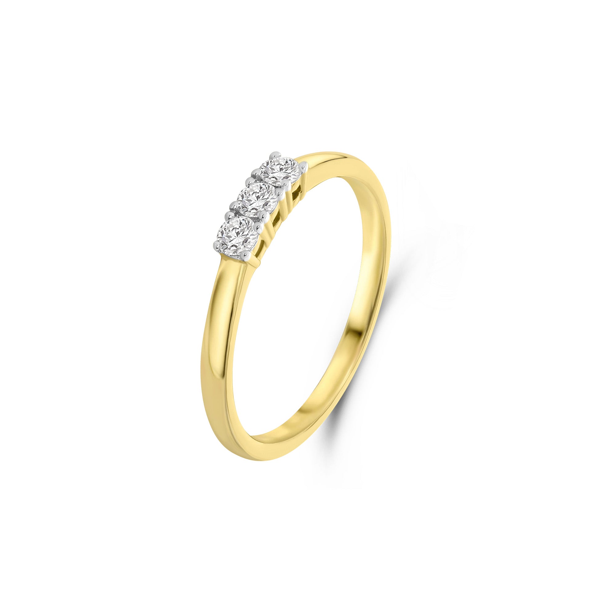 Acest inel din aur galben face parte din colectia Millennium. Realizat din aur galben de 14 karate, este incrustat cu trei diamante taiate briliant, cultivate in laborator. Greutatea totala este de 0,19 ct. Inelul cantareste 1,90 gramee. Asorteaza acest inel cu alte bijuterii din colectie.