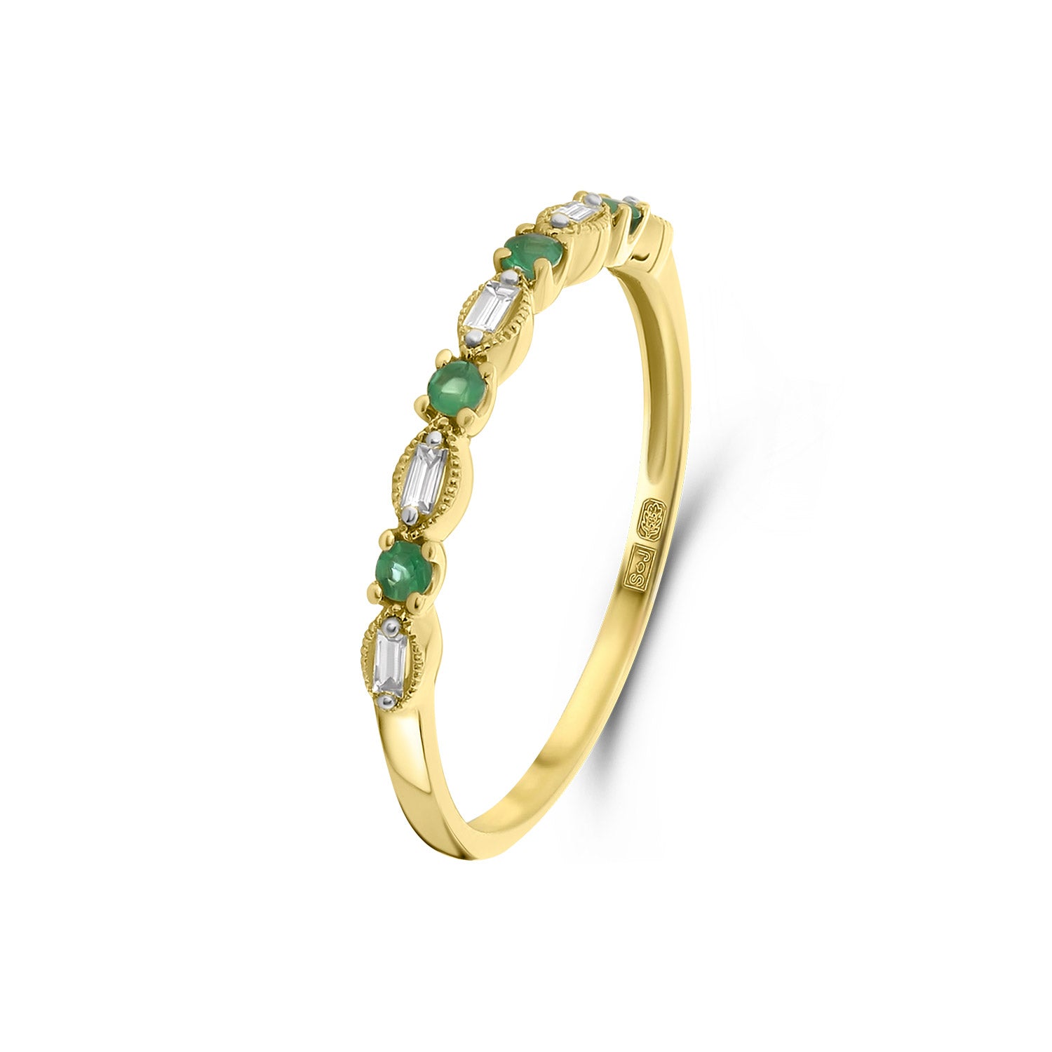 Inel din aur galben cu diamante si smaralde din colectia Gemsl. Realizat din aur galben de 14 karate, inelul prezinta smaralde si diamante in diferite taieturi.