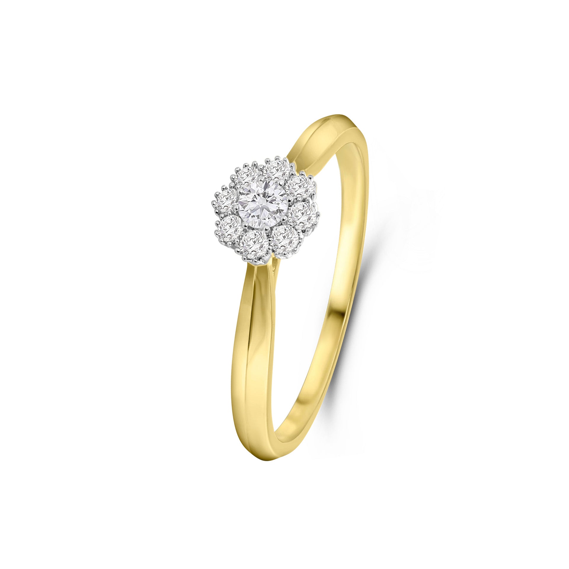 Acest inel din aur galben face parte din colectia Millennium. Realizat din aur galben de 14 karate, este incrustat cu noua diamante cultivate in laborator. Un total de 0,20 ct. Inelul cantareste 1,89 gramee. Asorteaza acest inel cu alte piese din colectie.