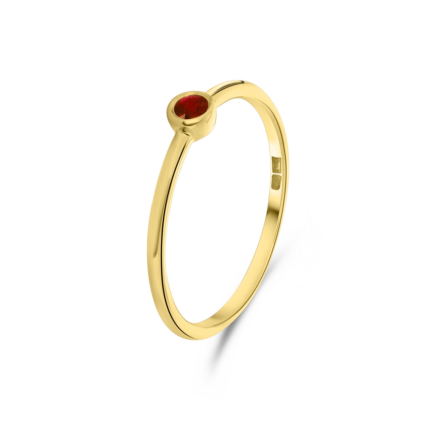 Inel din aur galben cu granit rosu din colectia Gold by Siebel. Realizat din aur galben de 14 karate, inelul prezinta un granit rosu taiat briliant. Asorteaza-l cu alte piese din colectie.