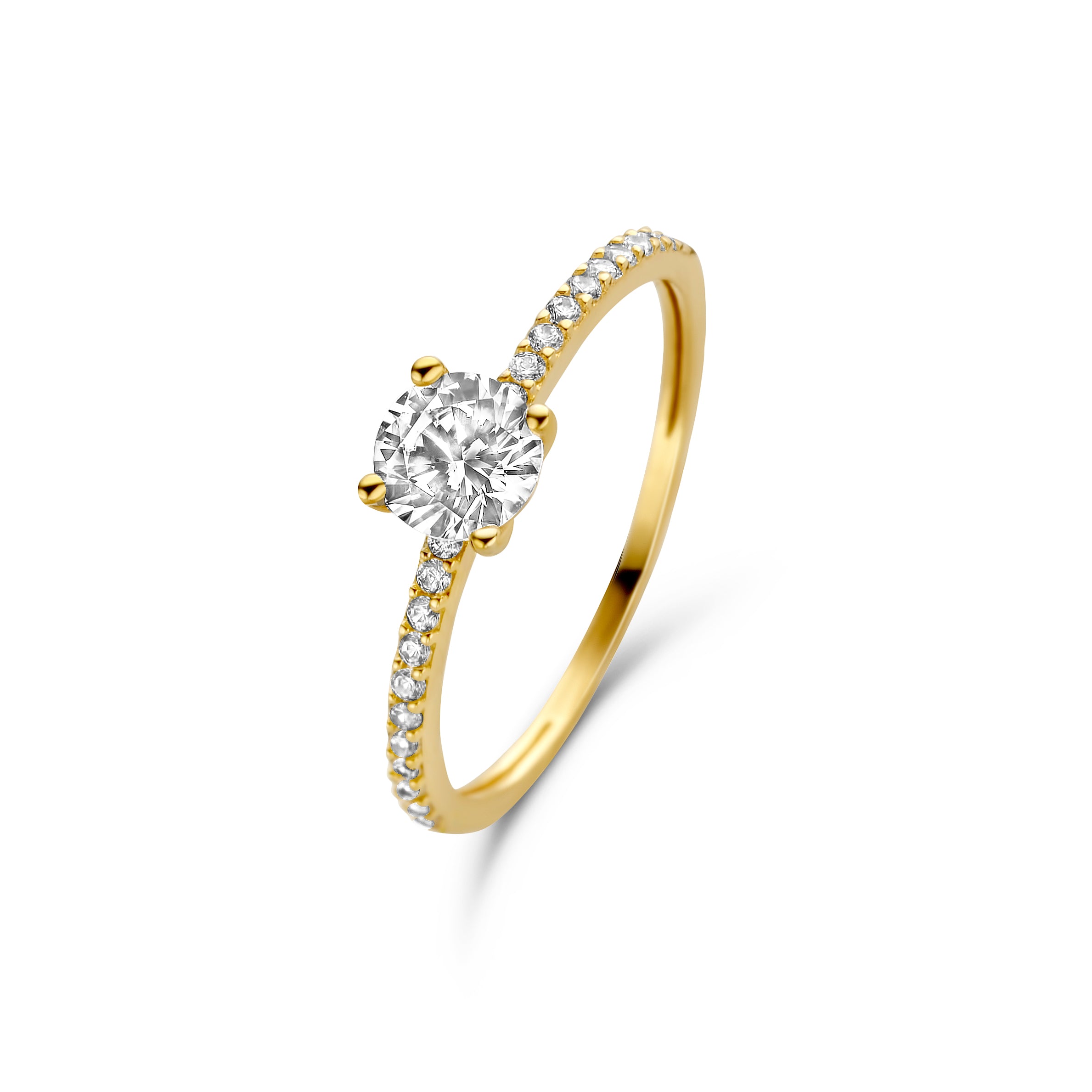 Inel din aur galben cu zirconiu din colectia Sierabelle. Realizat din aur galben de 14 karate, inelul este decorat cu 23 de pietre superbe de zirconiu. Combina-l cu alte bijuterii din colectie pentru a-ti completa tinuta.