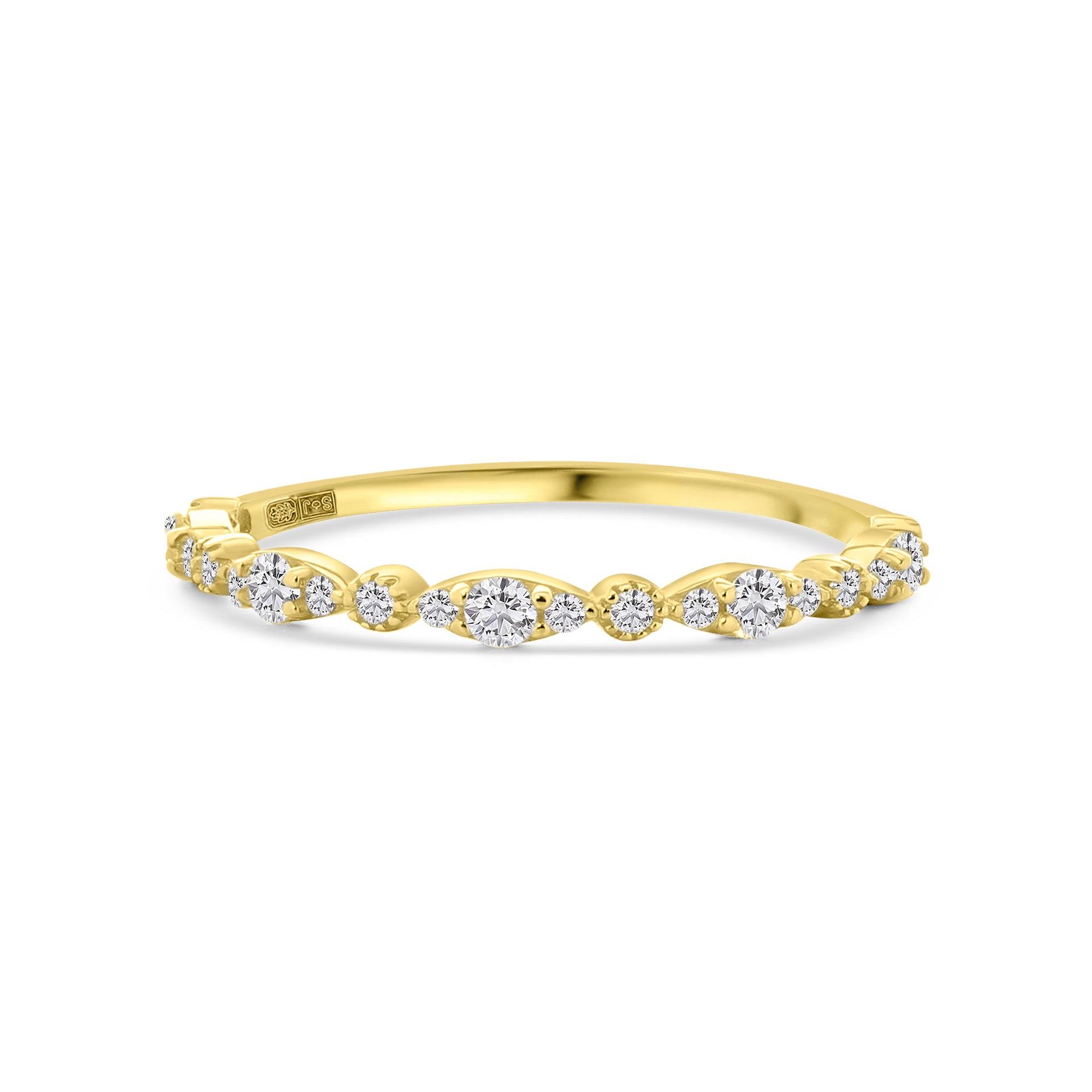 Inel din aur galben din colectia Gold by Siebel. Realizat din aur galben de 14 karate, acest inel este decorat cu 21 de pietre de zirconiu albe. Prezinta pietre de zirconiu rotunde si in forma de marchiza. Asorteaza acest inel cu alte piese din colectie.