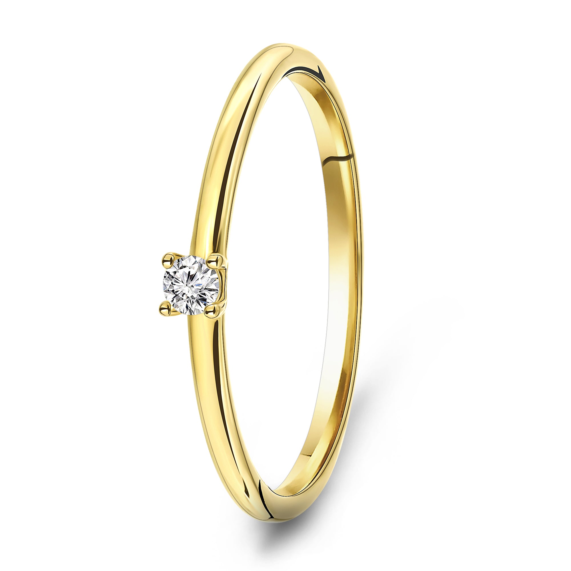 Inel din aur galben de 14 karate din colectia Valentina. Inelul are un model neted si este decorat cu o piatra de zirconiu. Asorteaza-l cu un alt inel delicat pentru un aspect elegant.